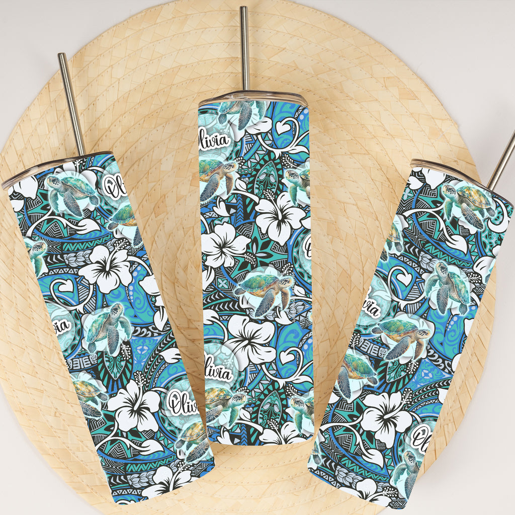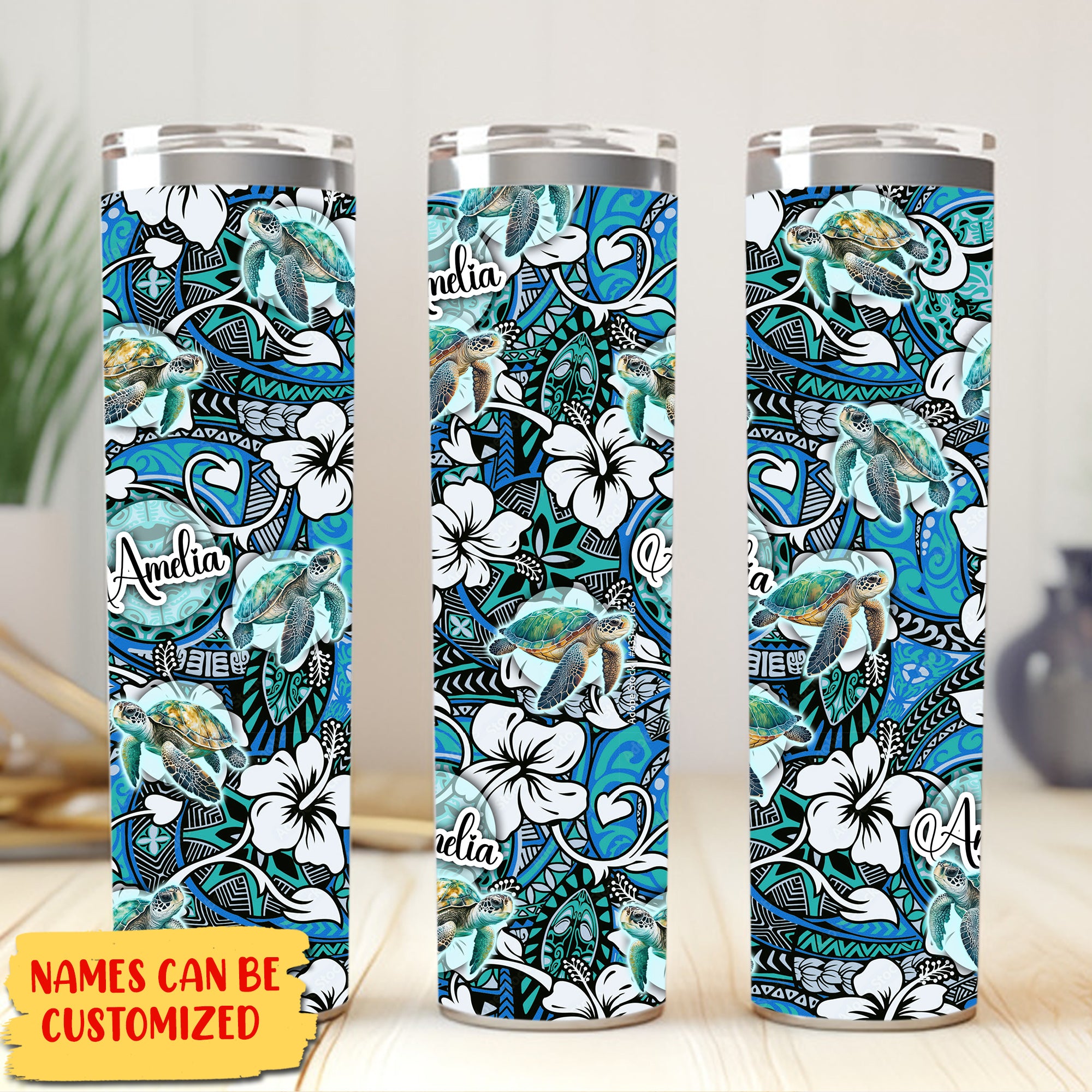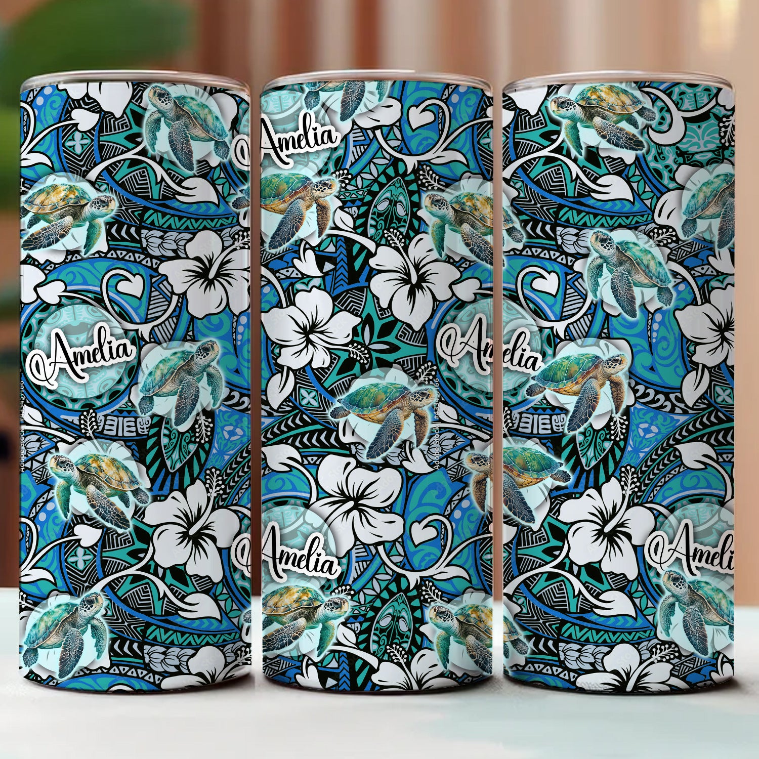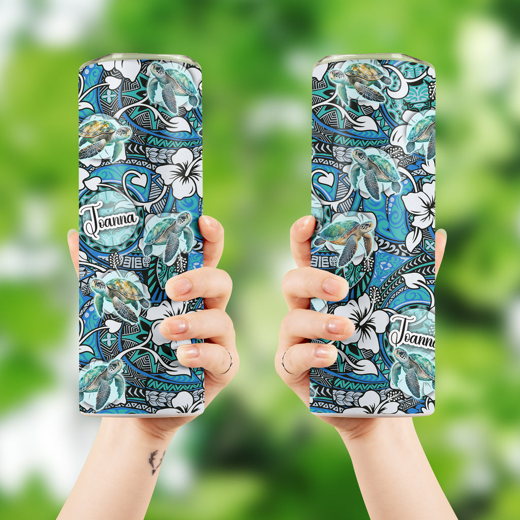 Personalized Sea Turtles Tribal Pattern Skinny Tumbler, Gift For Turtle Lover