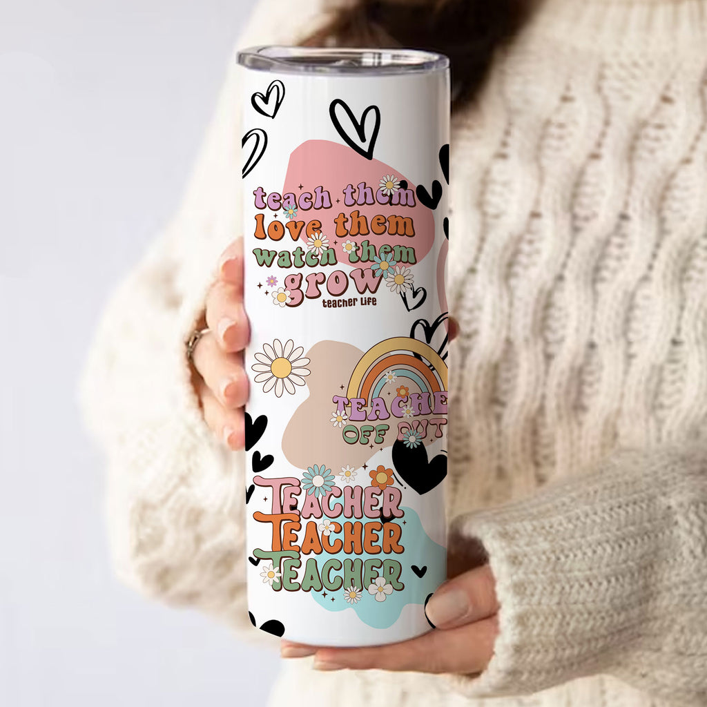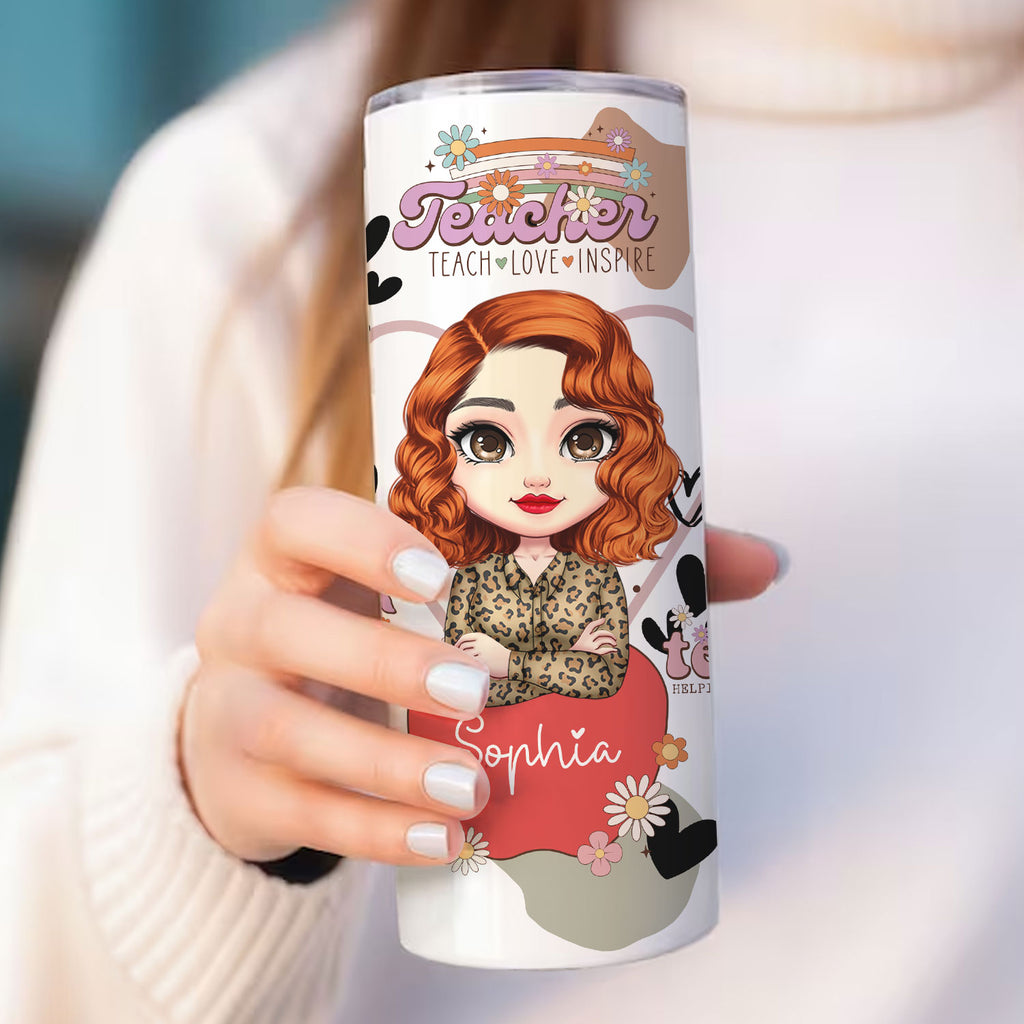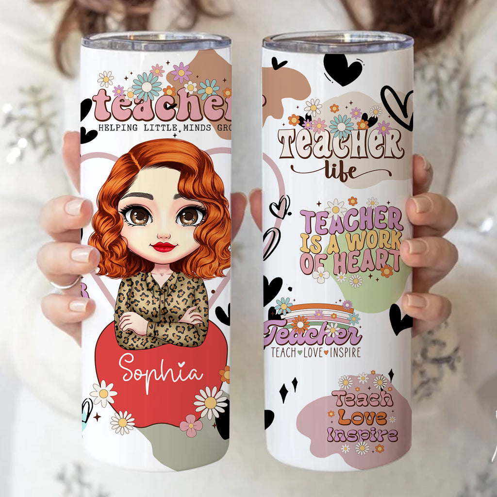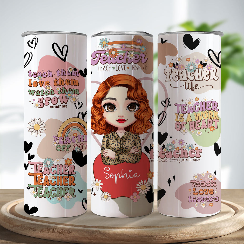 Teacher Life - Teacher Is A Work Of Heart - Custom Appearance And Name - Personalized Skinny Tumbler - Gift For Teachers - Back To School