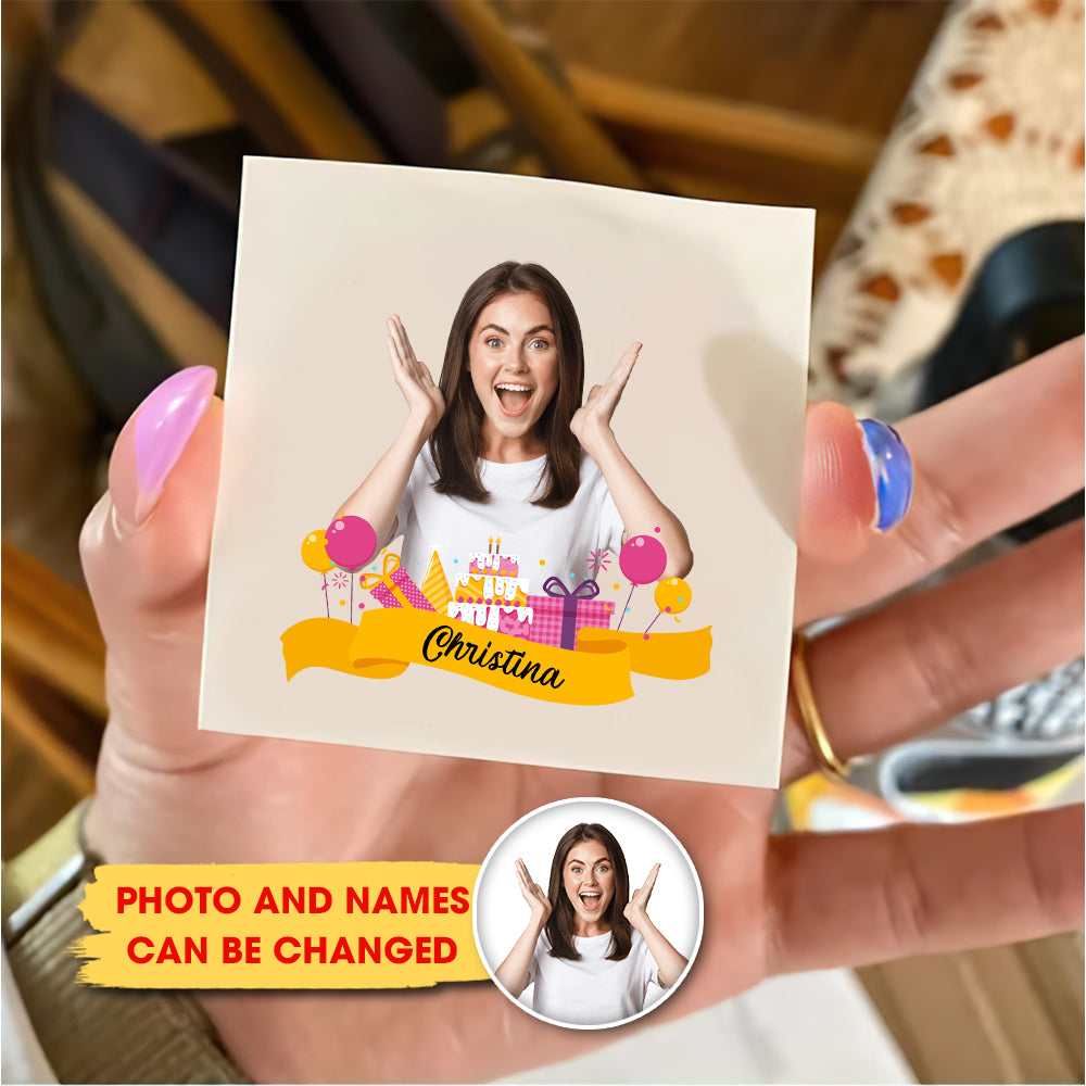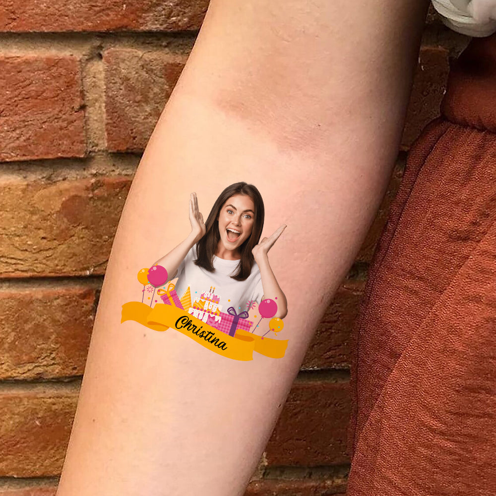Colorful Birthday Balloon, Custom Photo And Texts Temporary Tattoo, Personalized Tattoo, Fake Tattoo