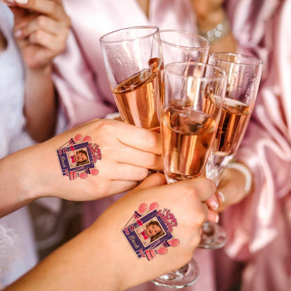 Happy Birthday Party, Custom Photo And Name Temporary Tattoo, Personalized Party Tattoo, Fake Tattoo