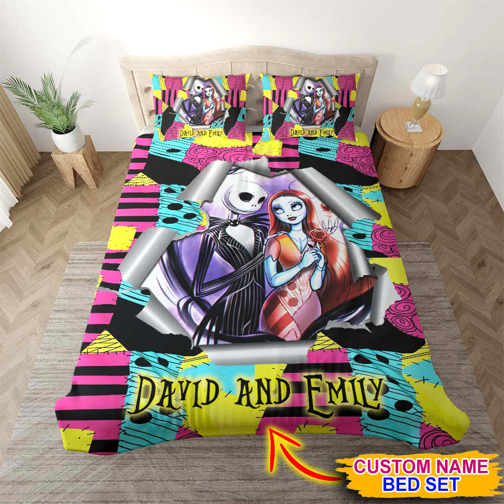 Personalized Bed Set Nightmare Before Christmas For Couple - Custome Name - Personalized Bedding Set
