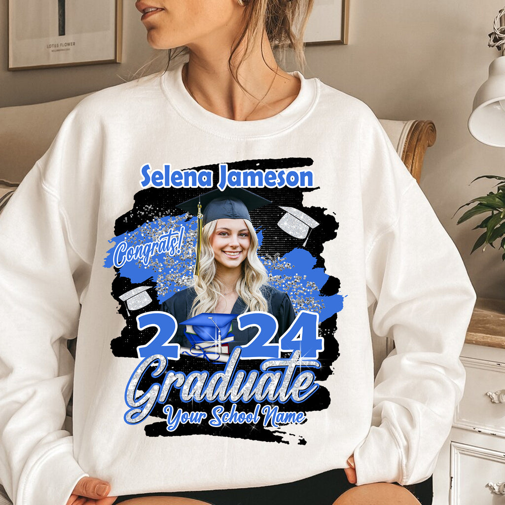 Congrats Graduate 2024 - Custom Photo And Texts Graduation Gift - Personalized Sweatshirt