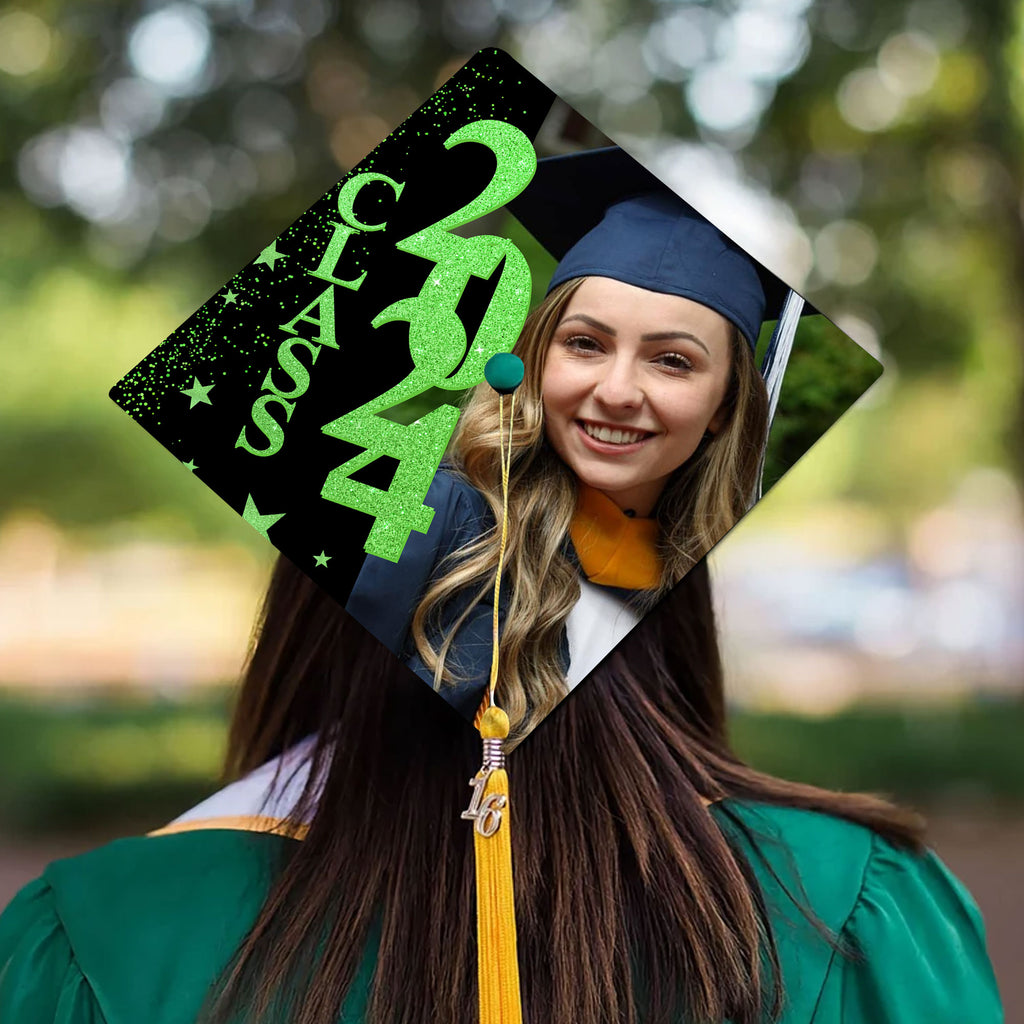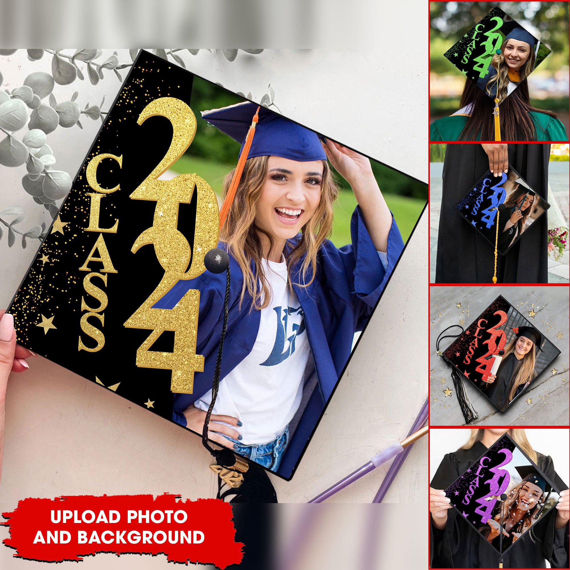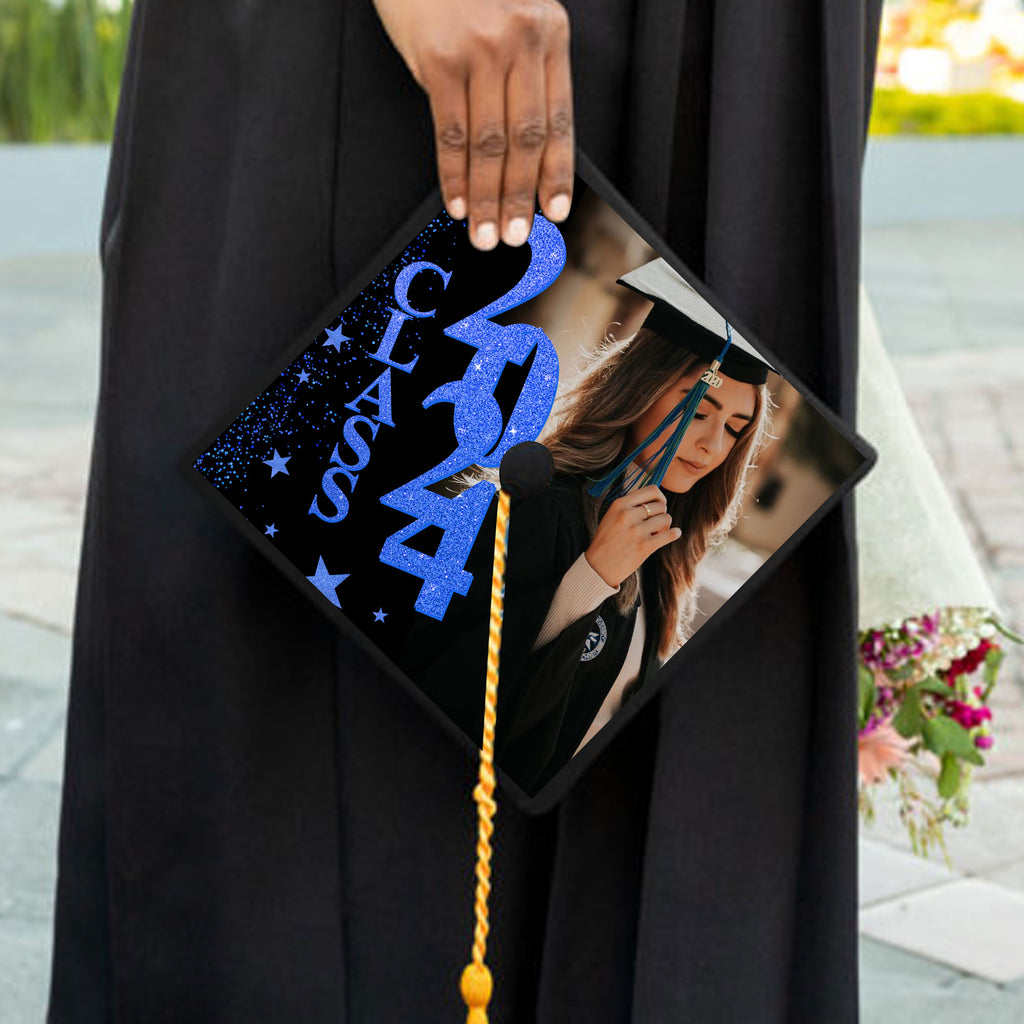Class 2024, Colorful Flowers Custom Photo Grad Cap Topper - Personalized Customized Graduation Cap, Graduation Gift