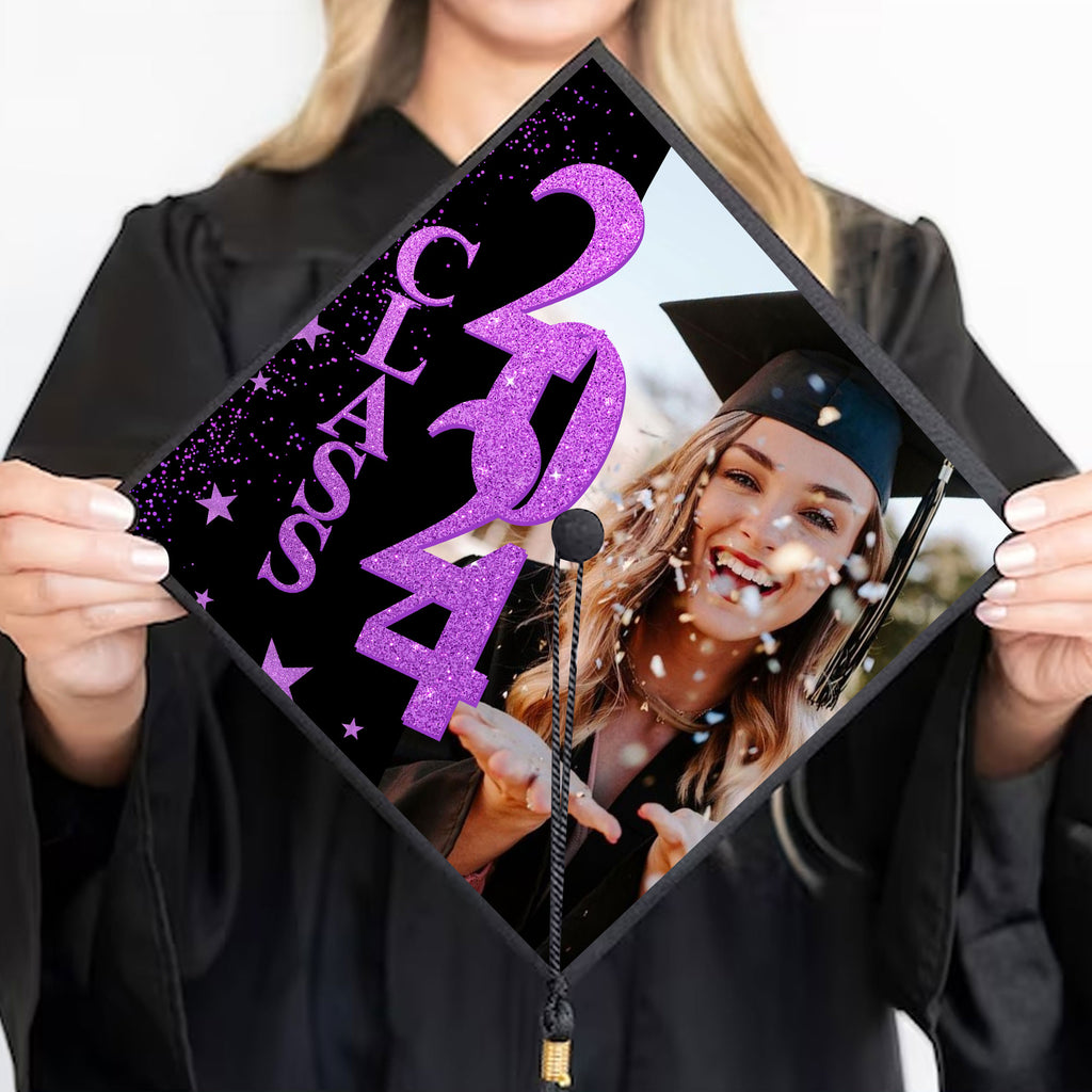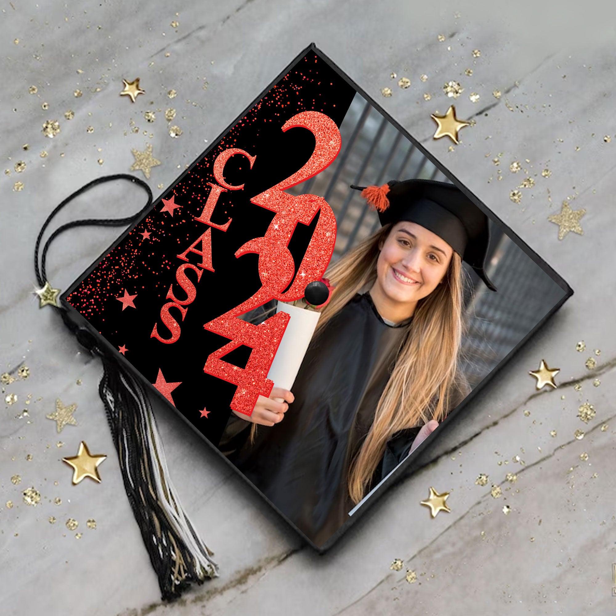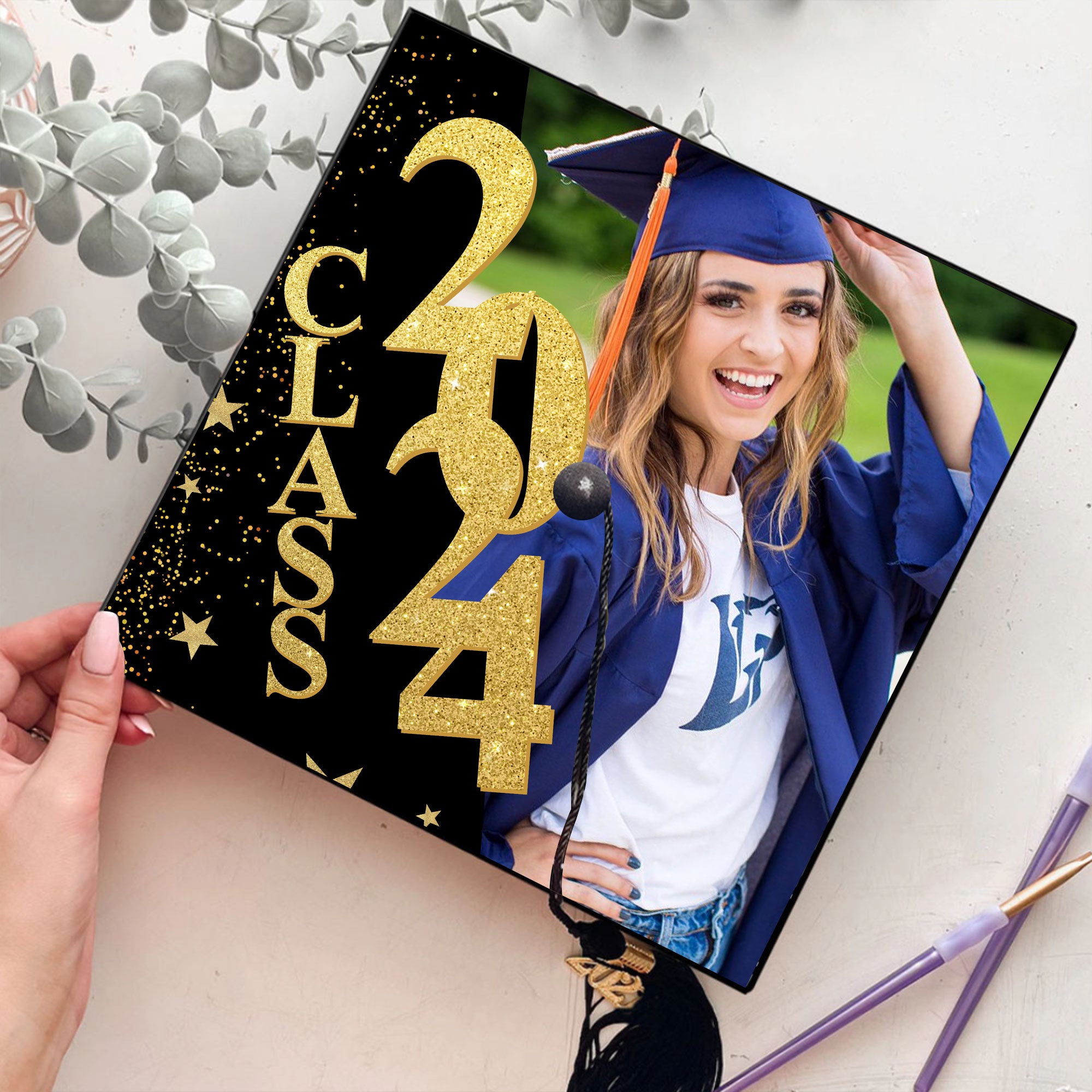 Class 2024, Colorful Flowers Custom Photo Grad Cap Topper - Personalized Customized Graduation Cap, Graduation Gift