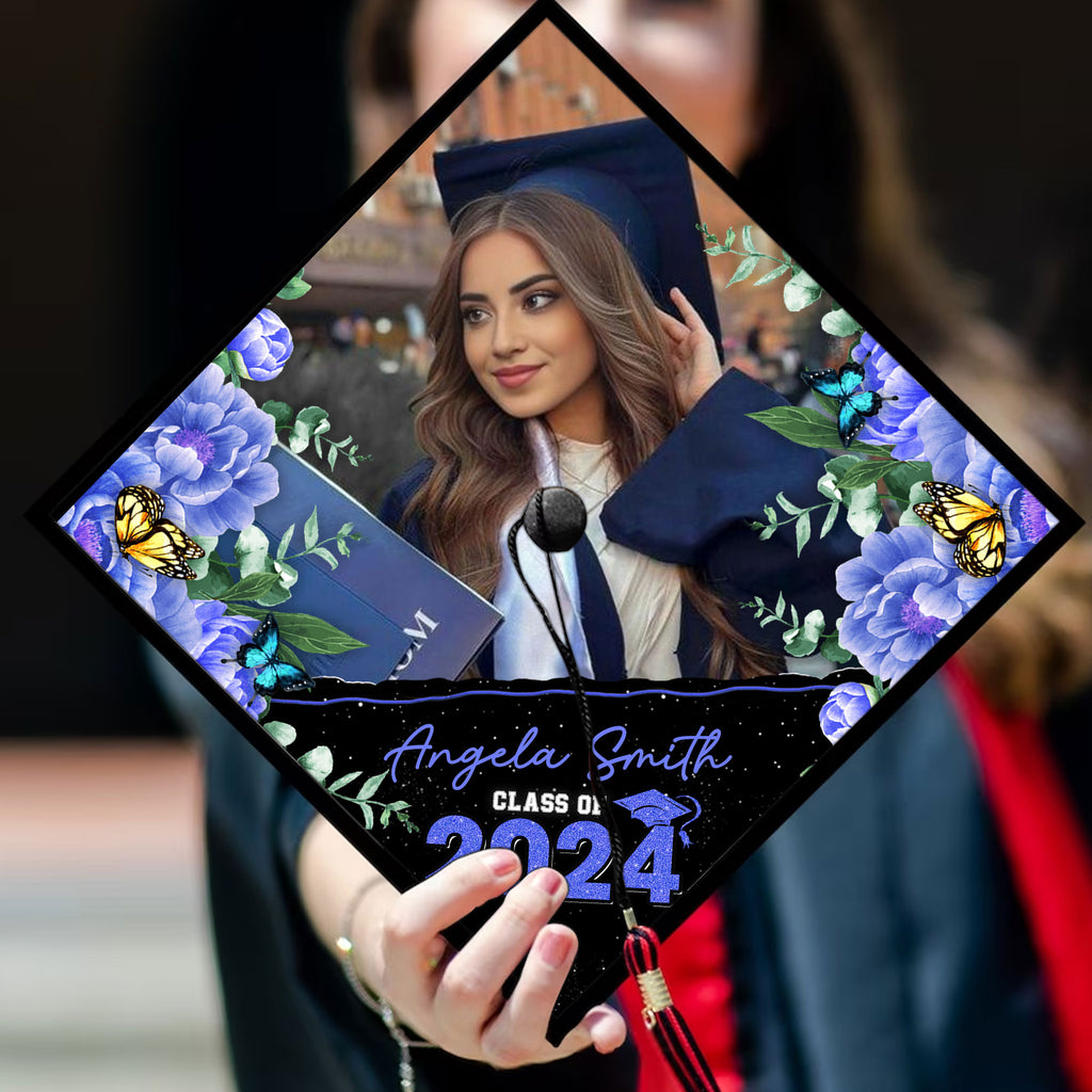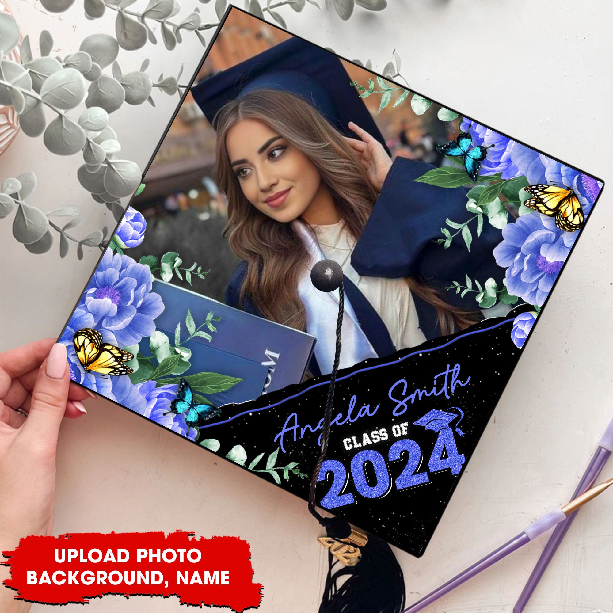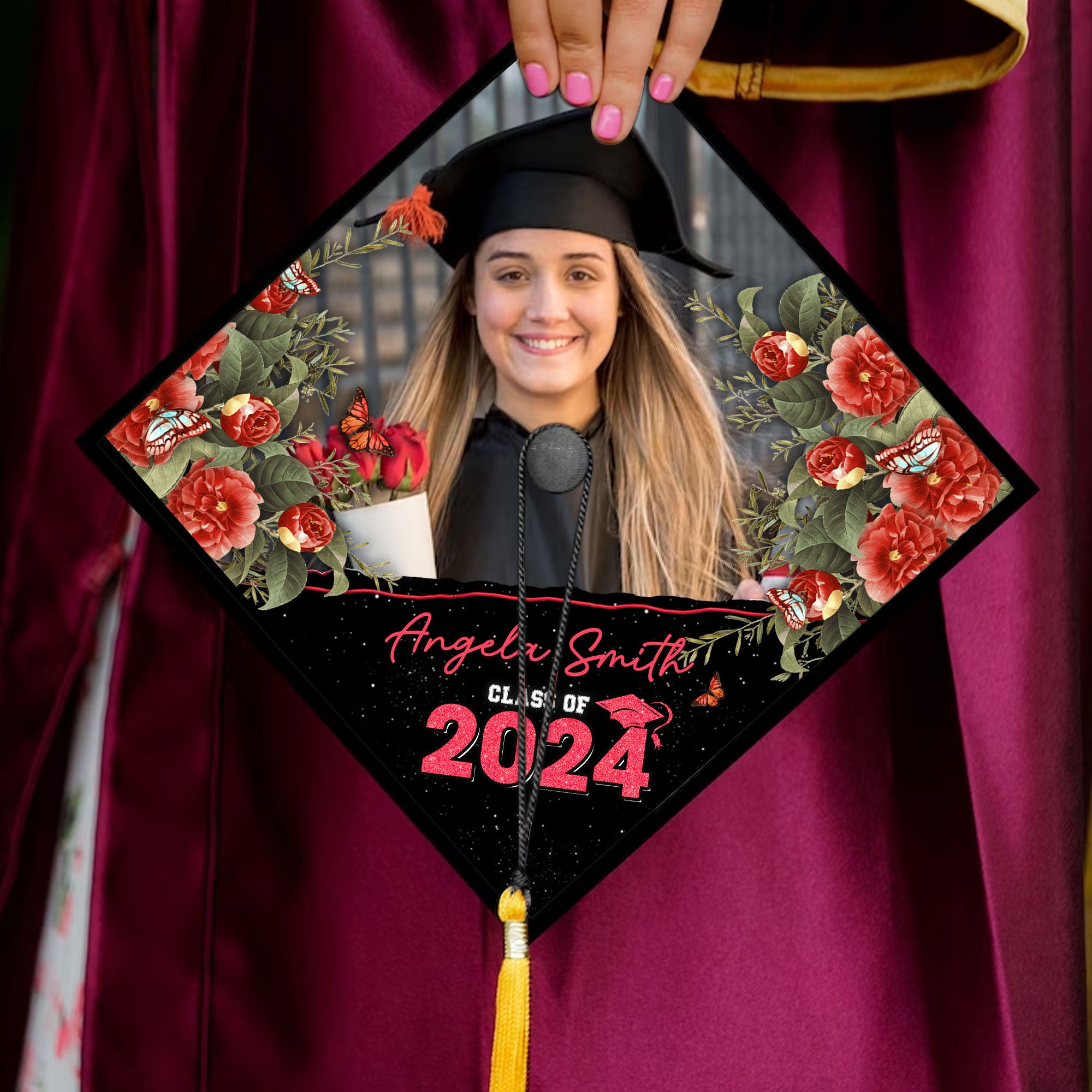 Class Of 2024, Colorful Flowers Custom Texts Grad Cap Topper - Personalized Customized Graduation Cap, Graduation Gift