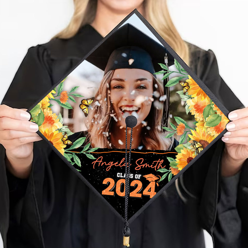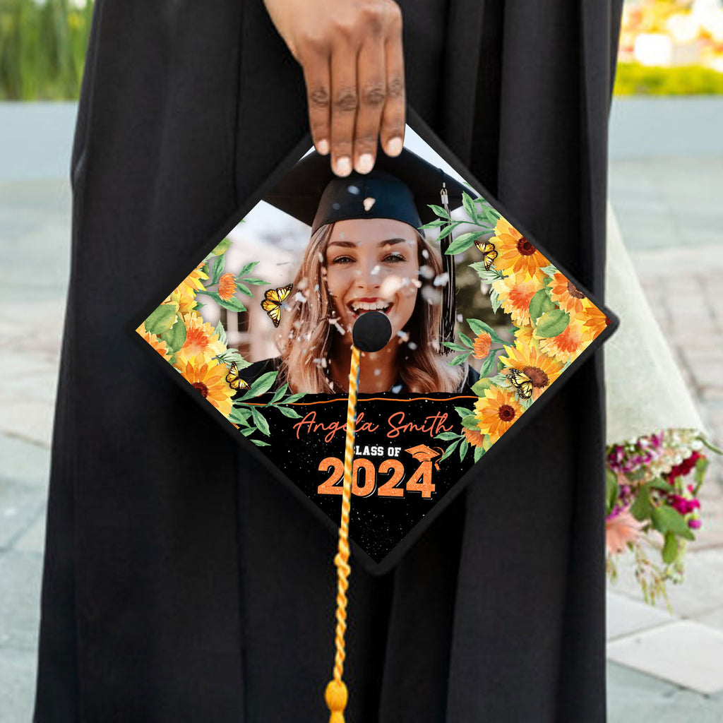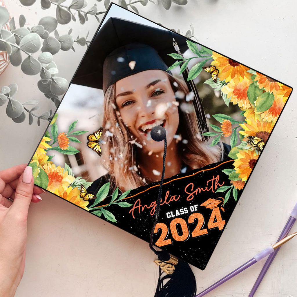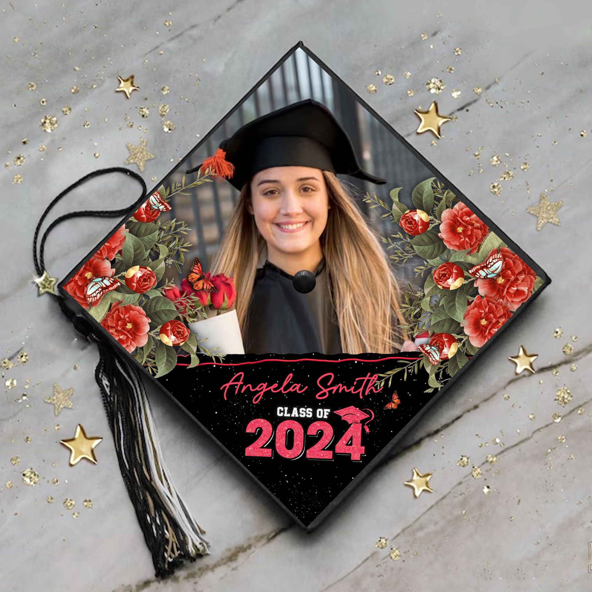 Class Of 2024, Colorful Flowers Custom Texts Grad Cap Topper - Personalized Customized Graduation Cap, Graduation Gift