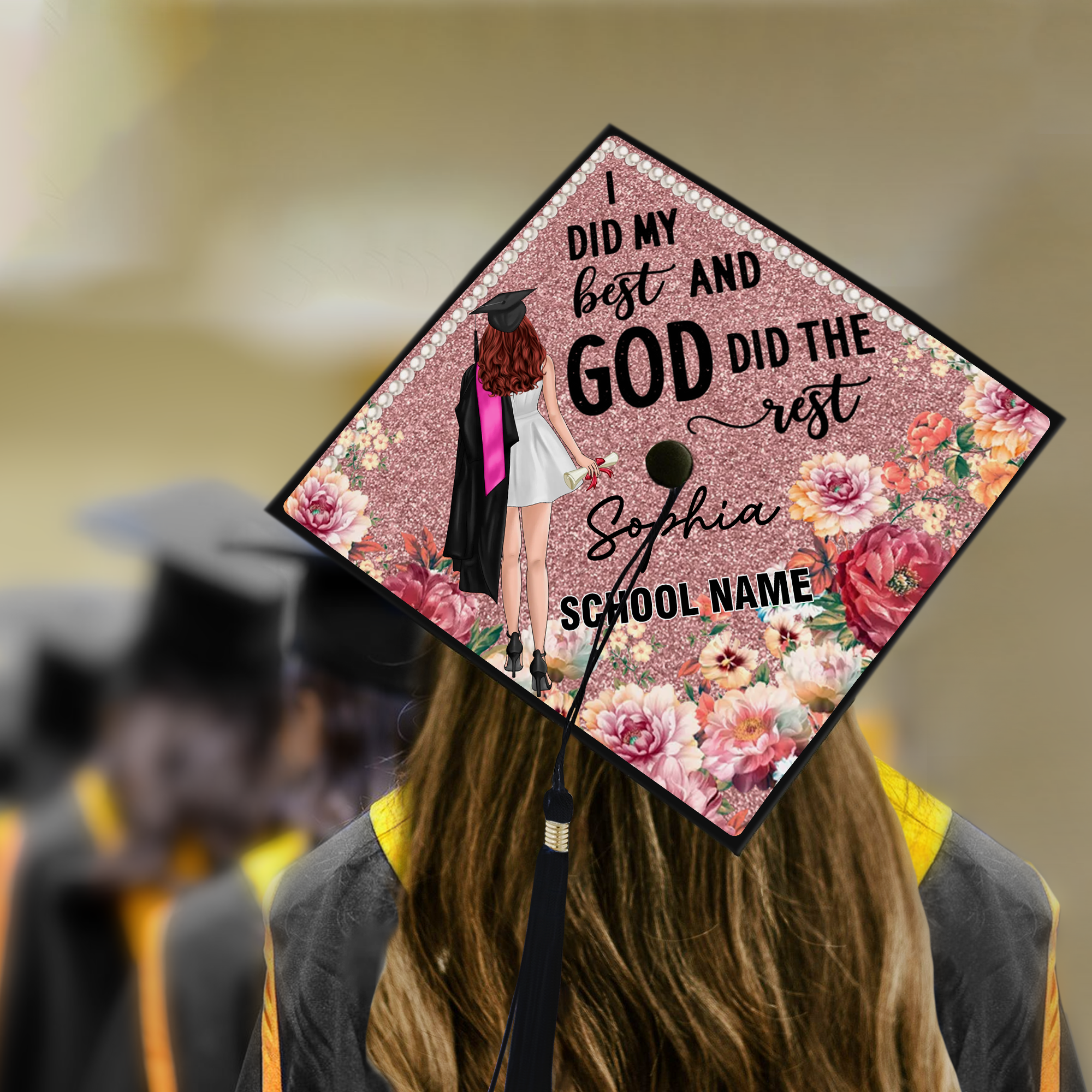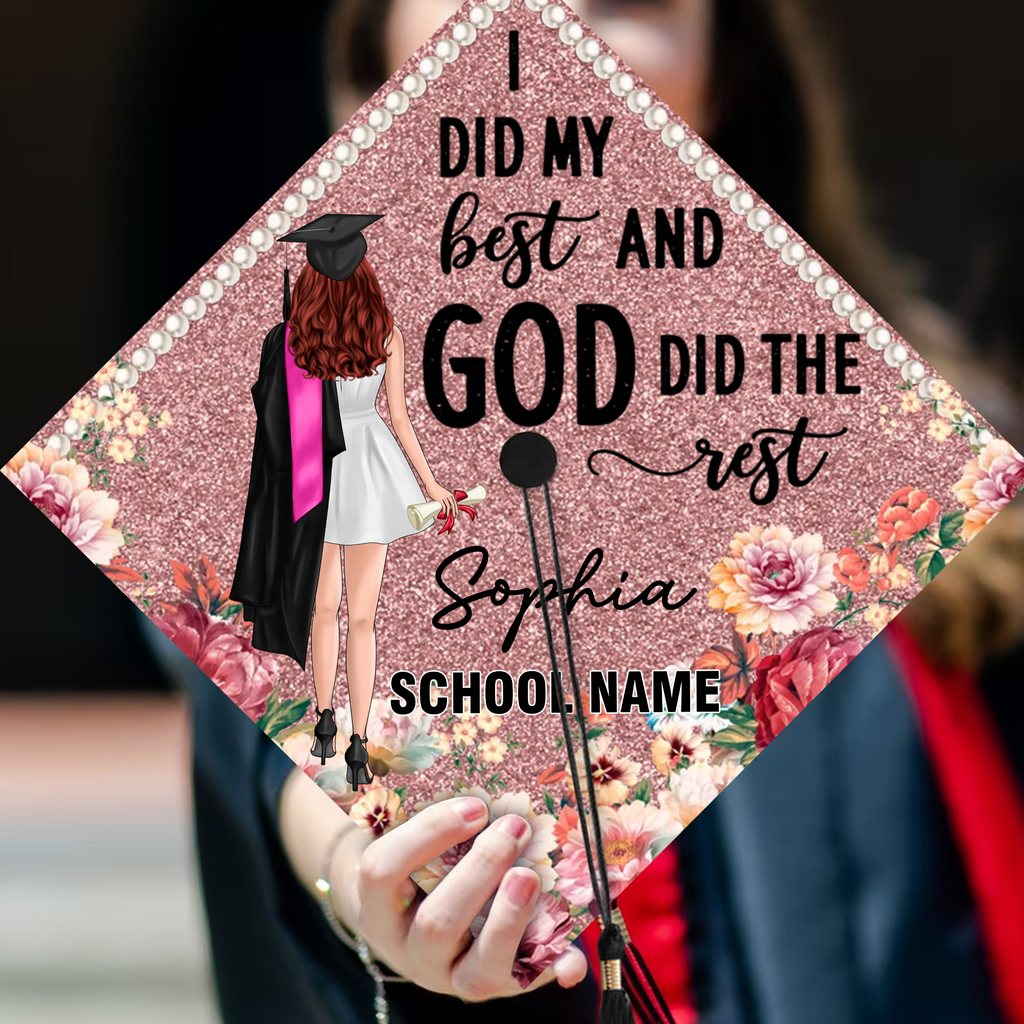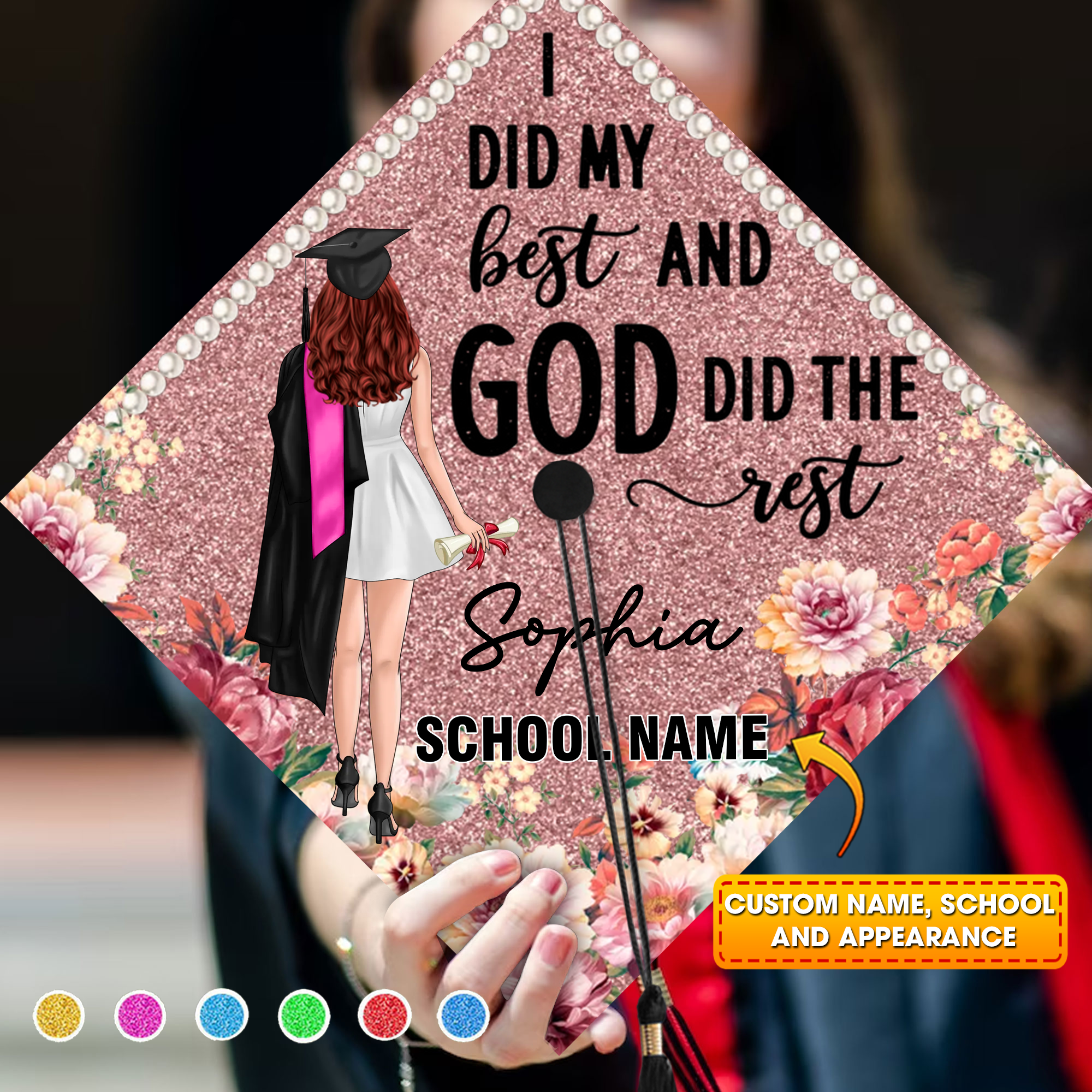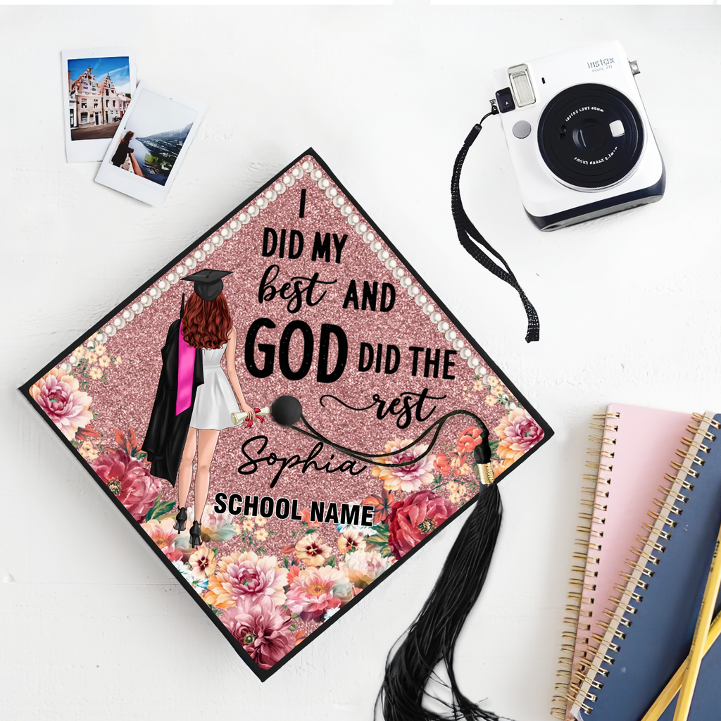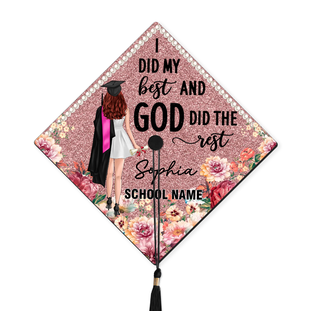 Did My Best And God Did The Rest - Personalized Graduation Cap Topper