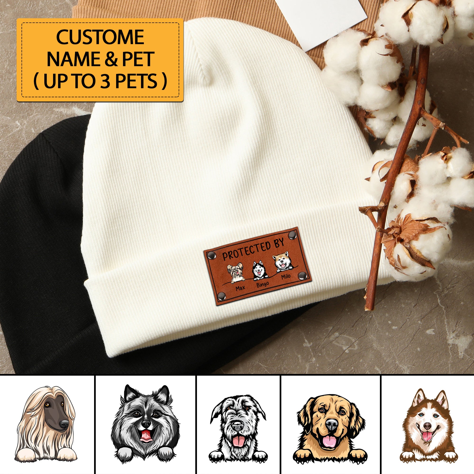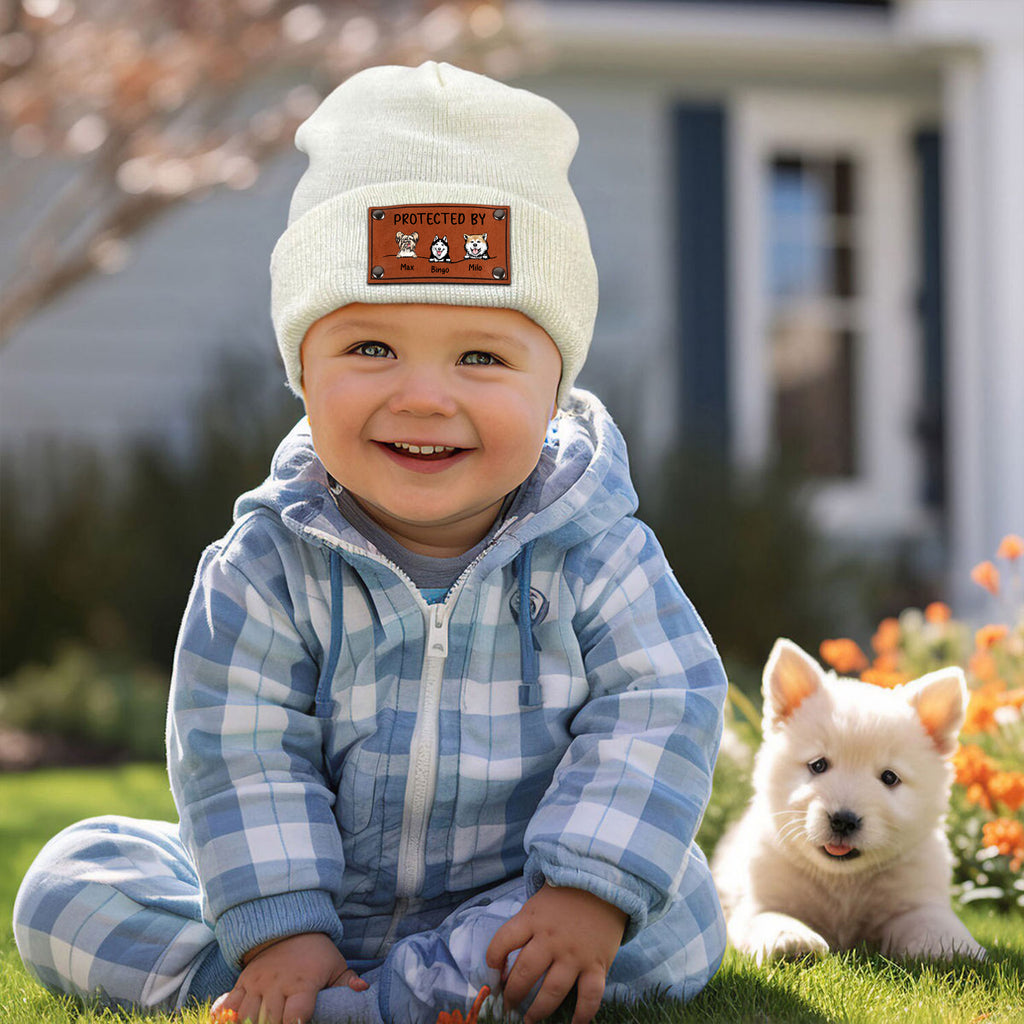 Protected By - Custom Dog And Name - Personalized Baby Beanie - Family Gift, Gift For Pet Lover