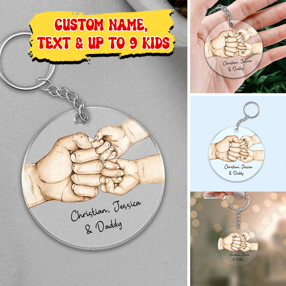 Dad And Kid Punch Hand, Custom Skin Color And Text - Personalized Acrylic Keychain