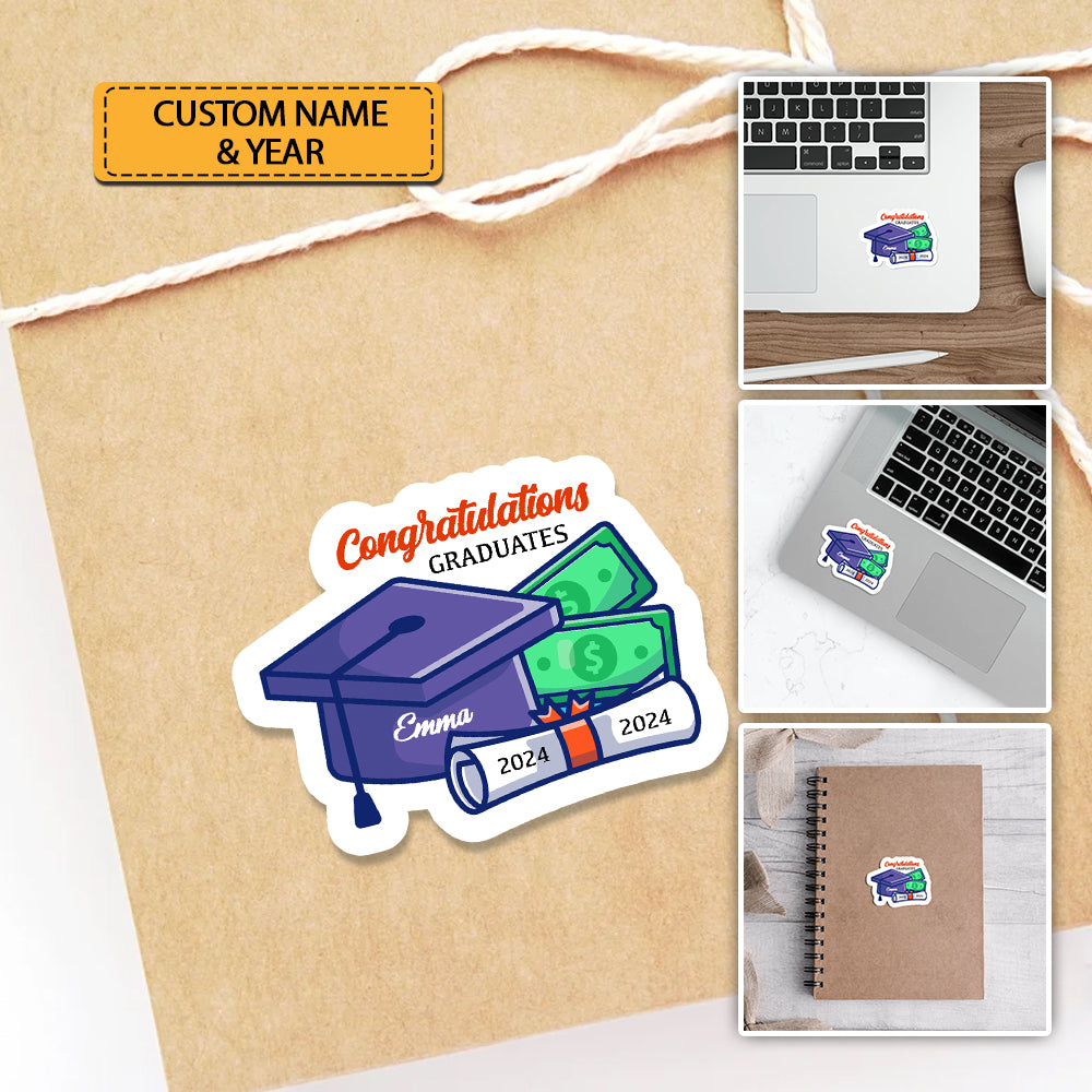 Congratulations Graduates - Custom Name And Year - Personalized Sticker, Gift For Graduation