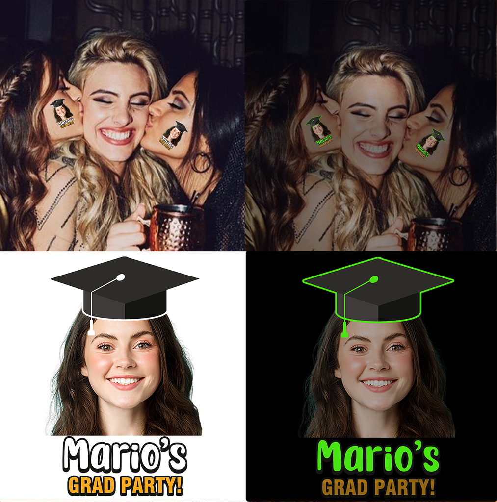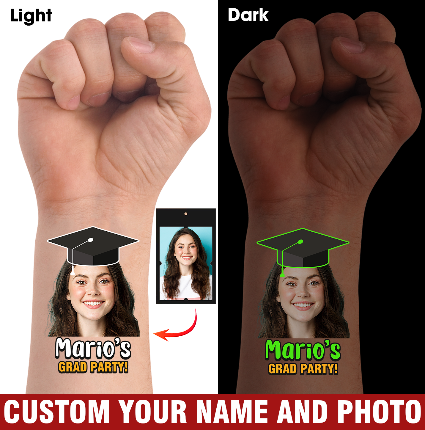 Grad Party, Custom Temporary Tattoo With Personalized Photo And Texts, Fake Tattoo