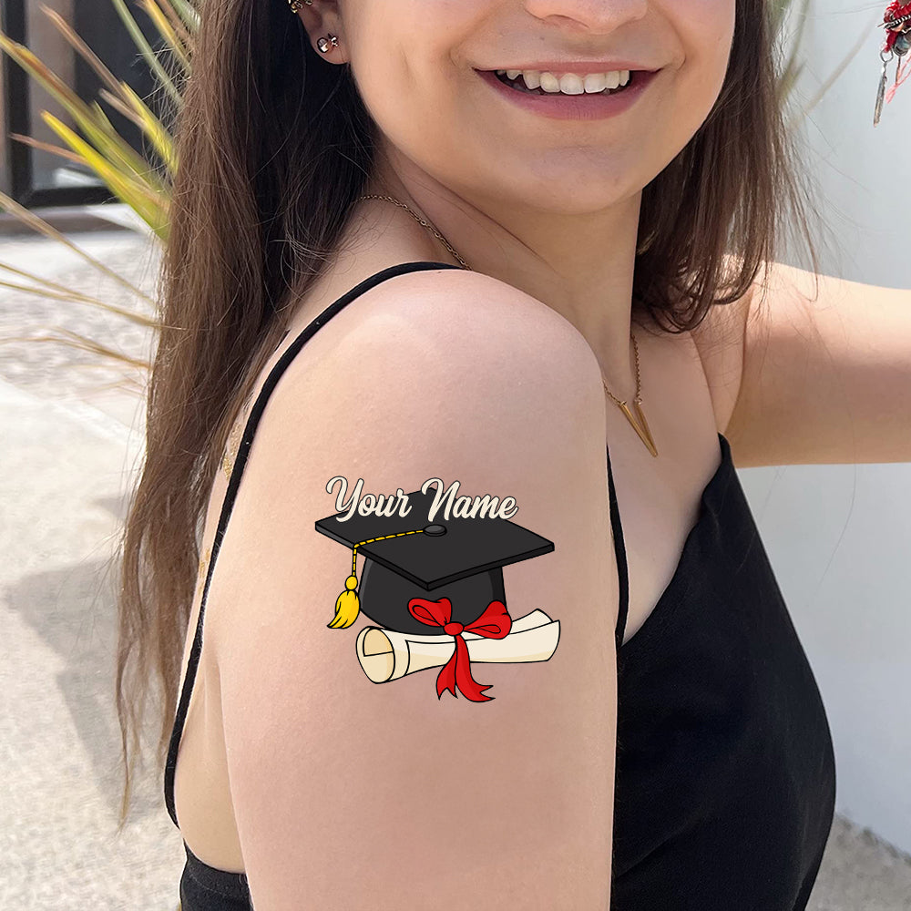 Graduation Cap, Custom Temporary Tattoo, Personalized Name, Fake Tattoo, Graduation Gift