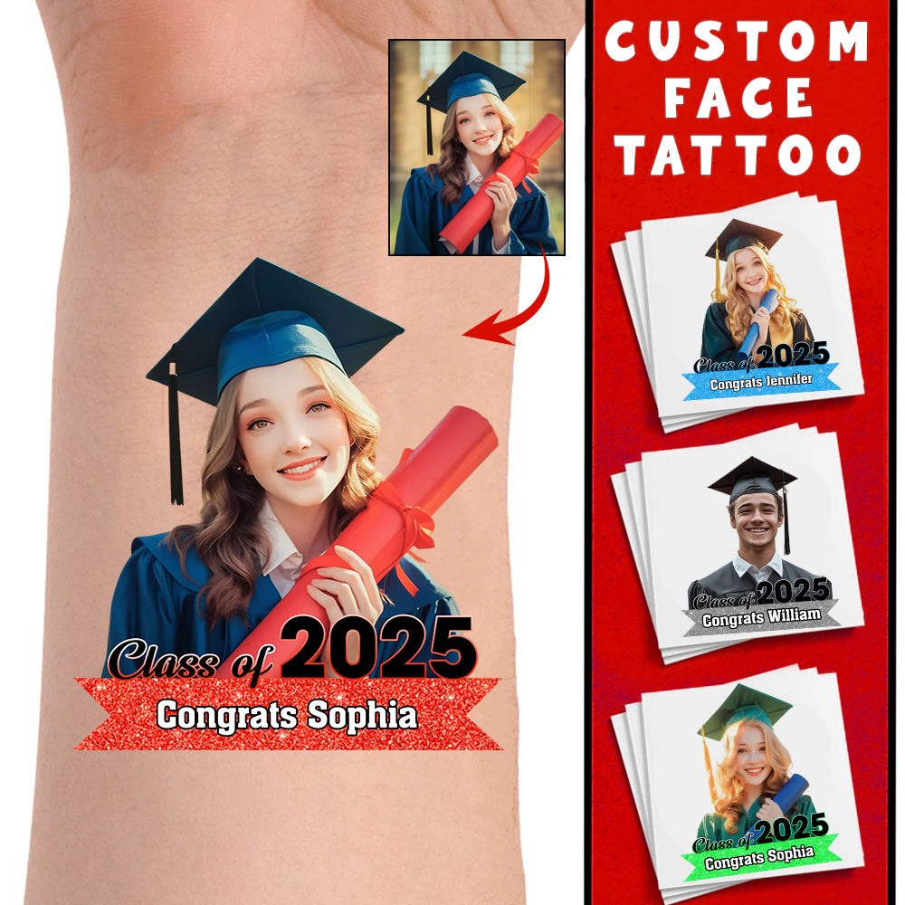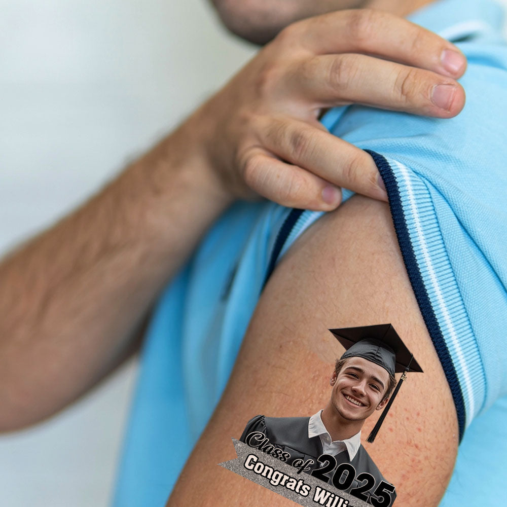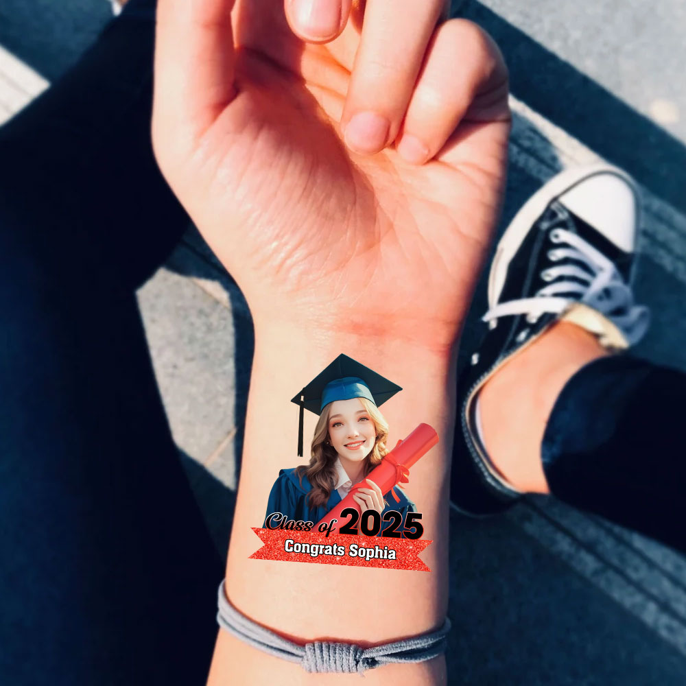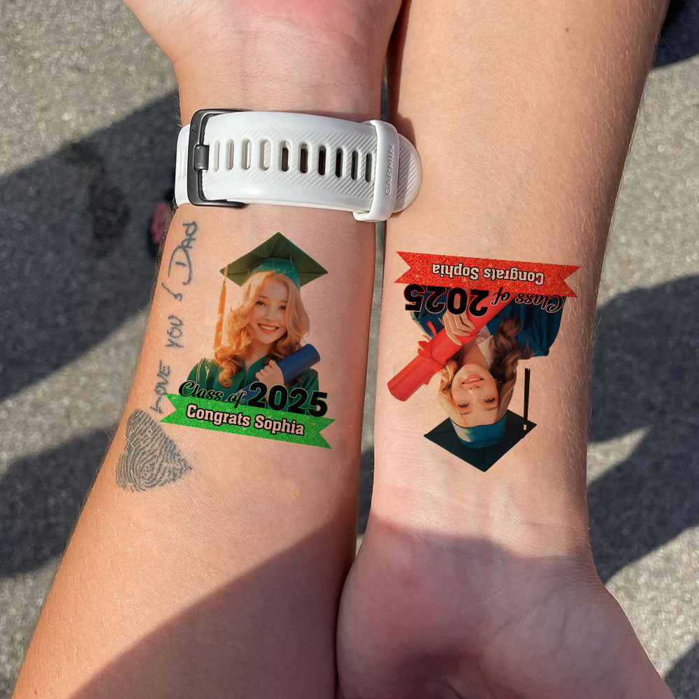 Graduation Tattoo Gift Custom Photo And Text Temporary Tattoo, Personalized Tattoo, Fake Tattoo