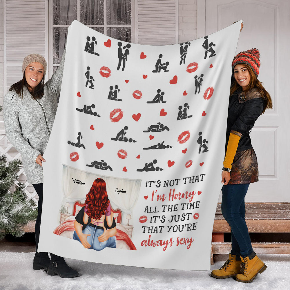 It's Not That I'm Horny All The Time, It's Just That Your're Always Sexy - Custom Appearances And Names - Personalized Fleece Blanket, Gift For Family, Couple Gift