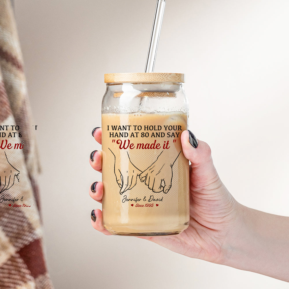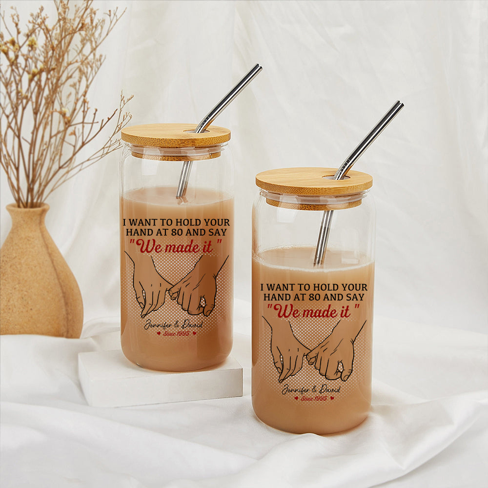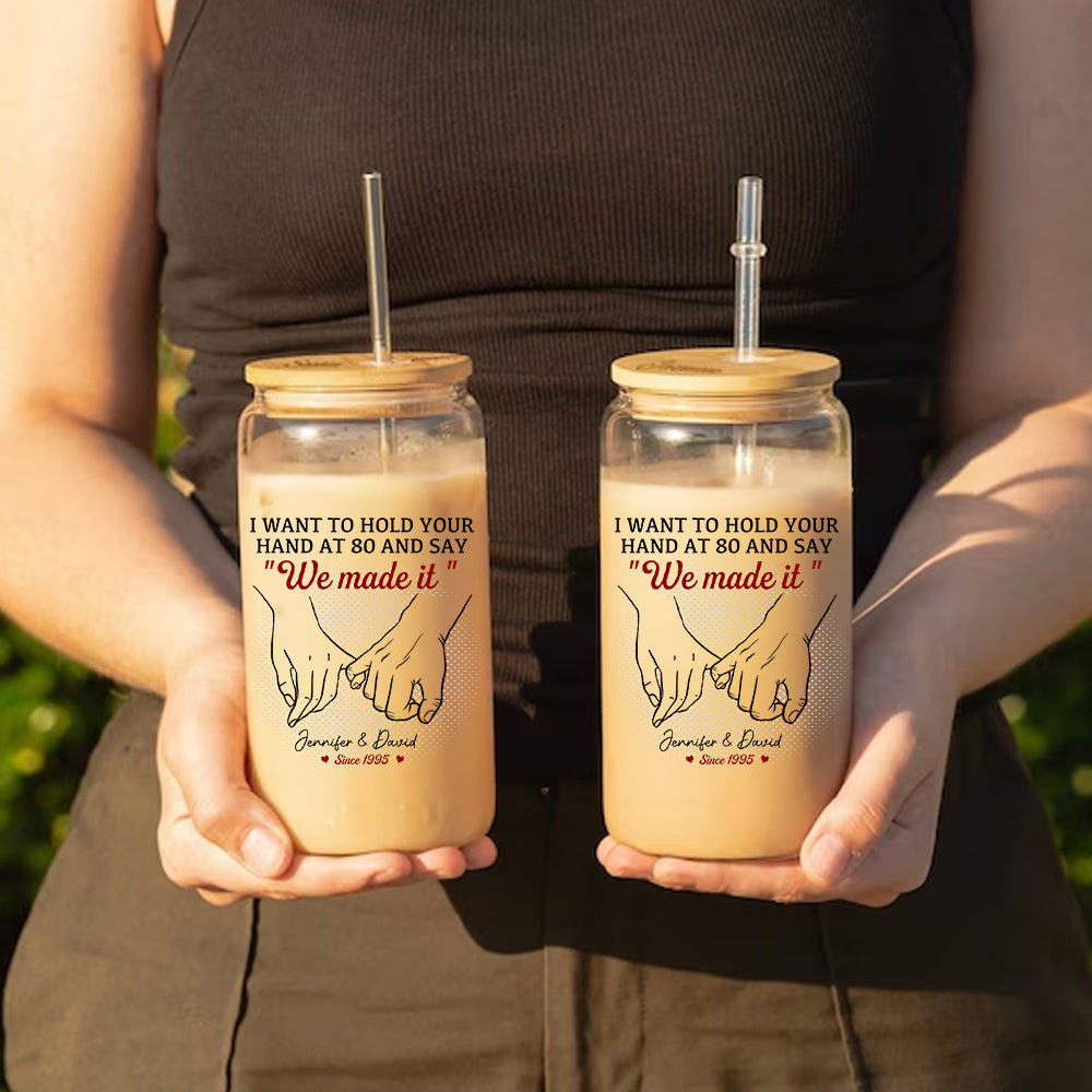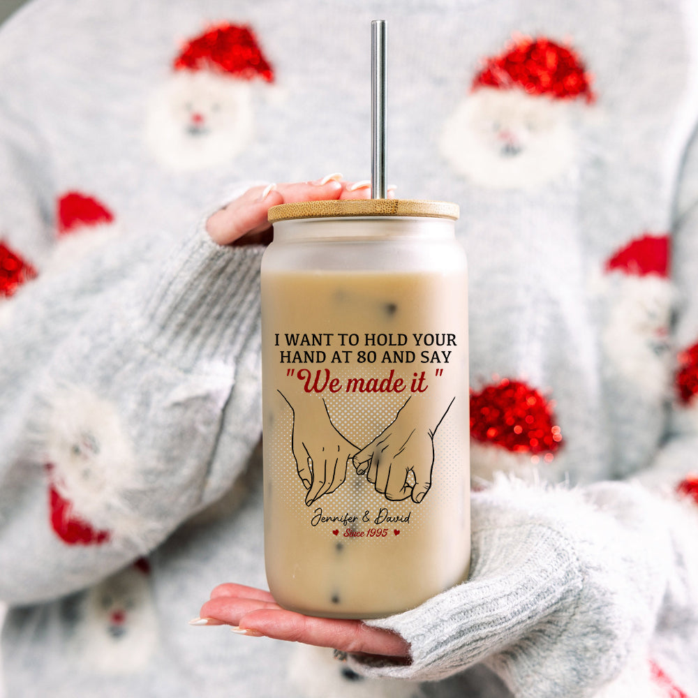 Wanna Hold Your Hand Forever Couple - Personalized Glass Bottle, Frosted Bottle, Gift For Husband Wife, Anniversary - Gift For Lover