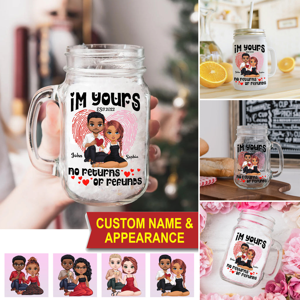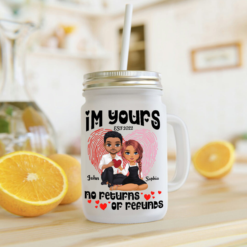 I'm Yours No Return And Refund, Custom Appearances And Names - Personalized Mason Jar Cup With Straw