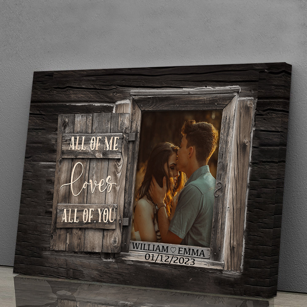 All Of Me Loves All Of You - Personalized Couple Photo And Text Canvas - Family Decor, Couple Gift
