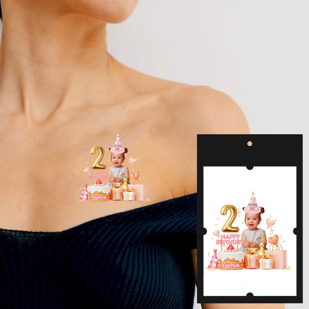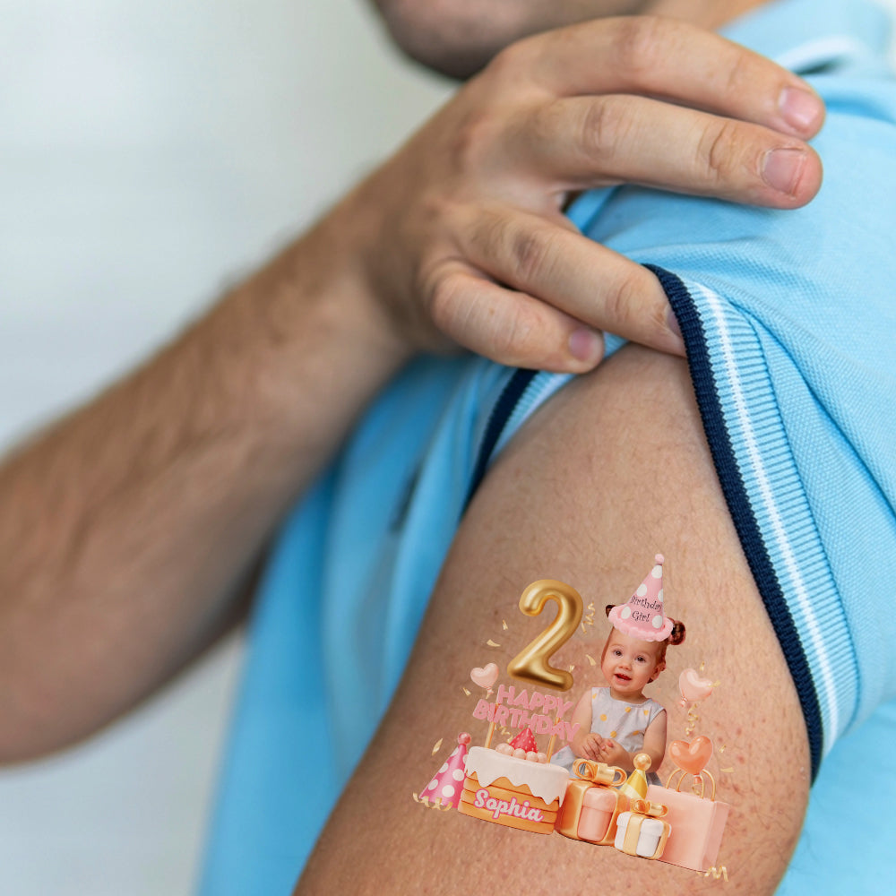 Birthday Girl, Custom Photo And Text Temporary Tattoo, Personalized Tattoo, Fake Tattoo