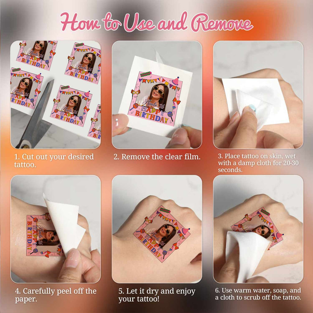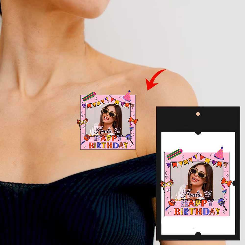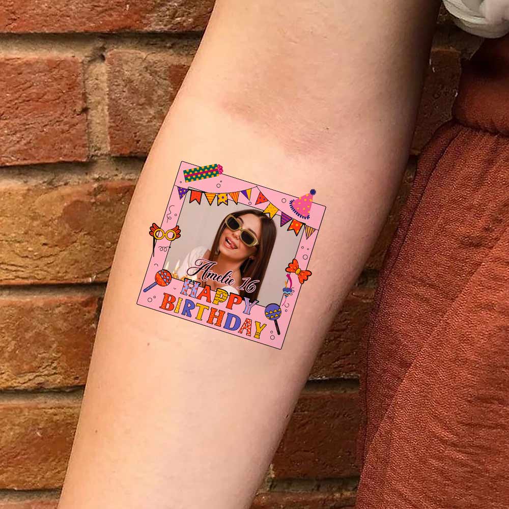 Birthday Tattoo, Custom Photo And Text Temporary Tattoo, Personalized Tattoo, Fake Tattoo