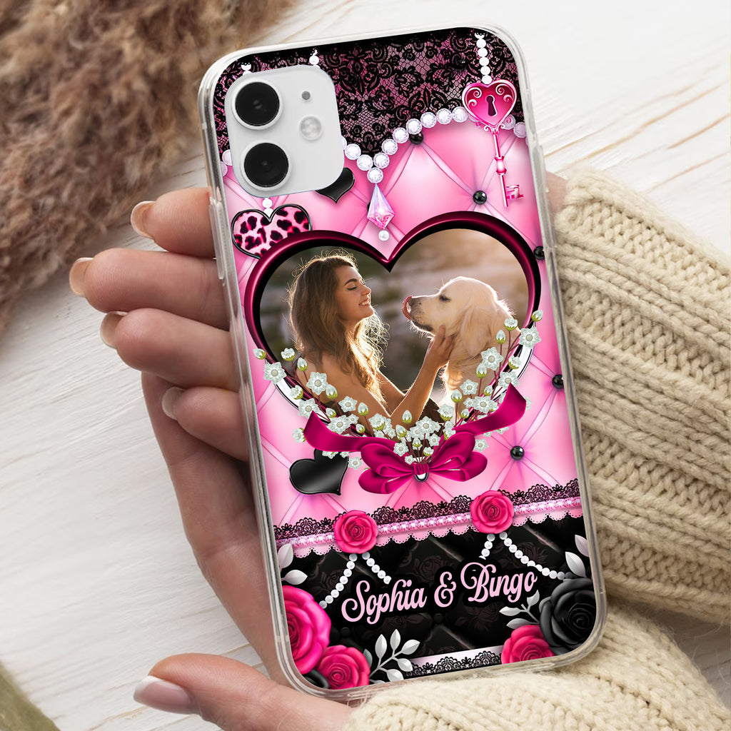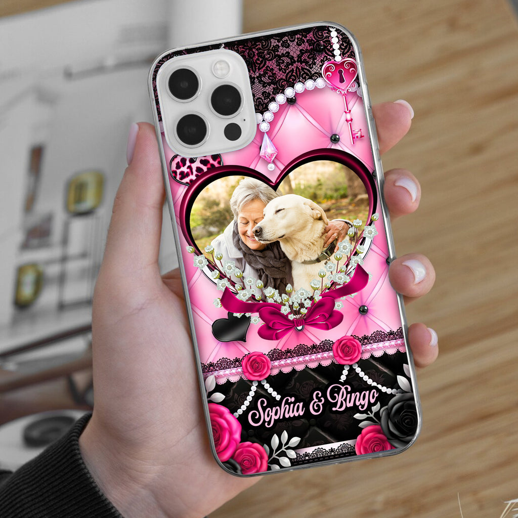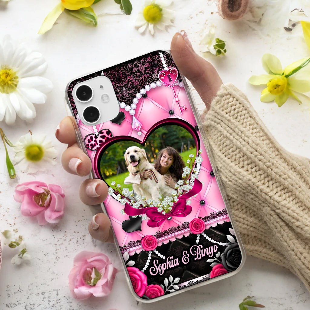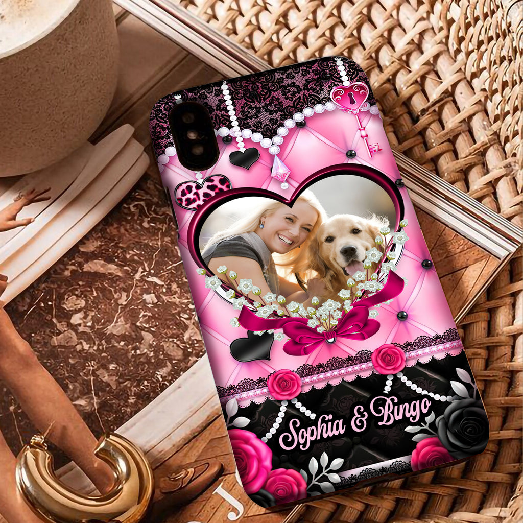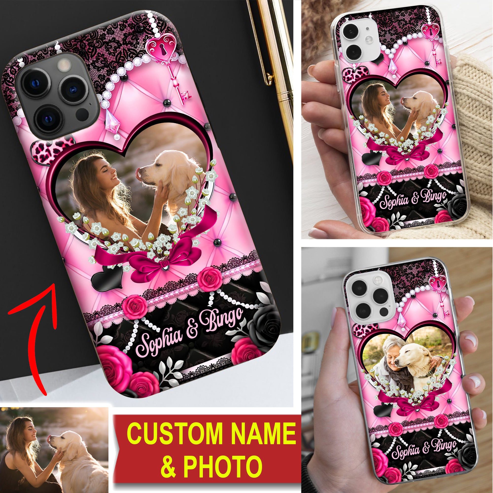 Black Pink Heart Pet Photo - Custom Photo And Name - Personalized Phone Case, Gift For Pet Lover, Gift For Family