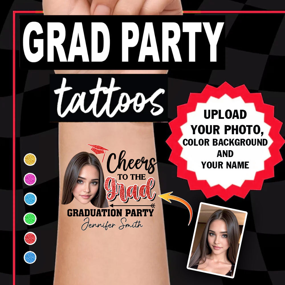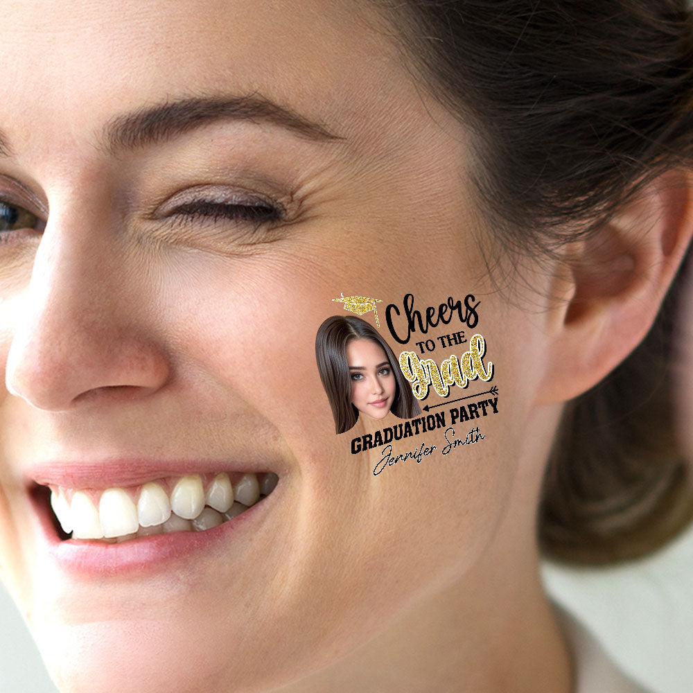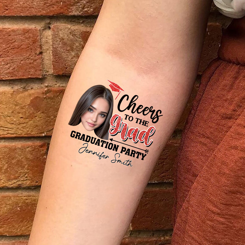 Cheers To The Grad, Custom Color, Photo And Name Temporary Tattoo, Personalized Grad Party Tattoo, Fake Tattoo, Graduation Gift