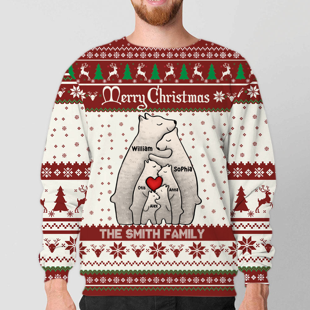 Christmas Bear Family - Personalized Woolen Sweater - Xmas Gift
