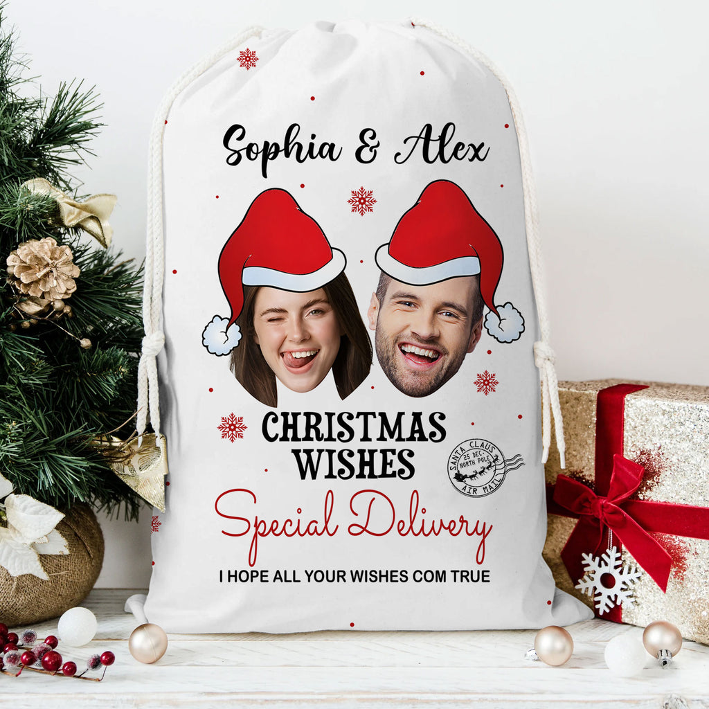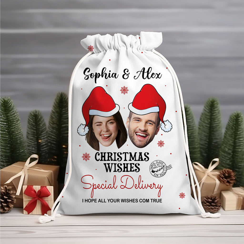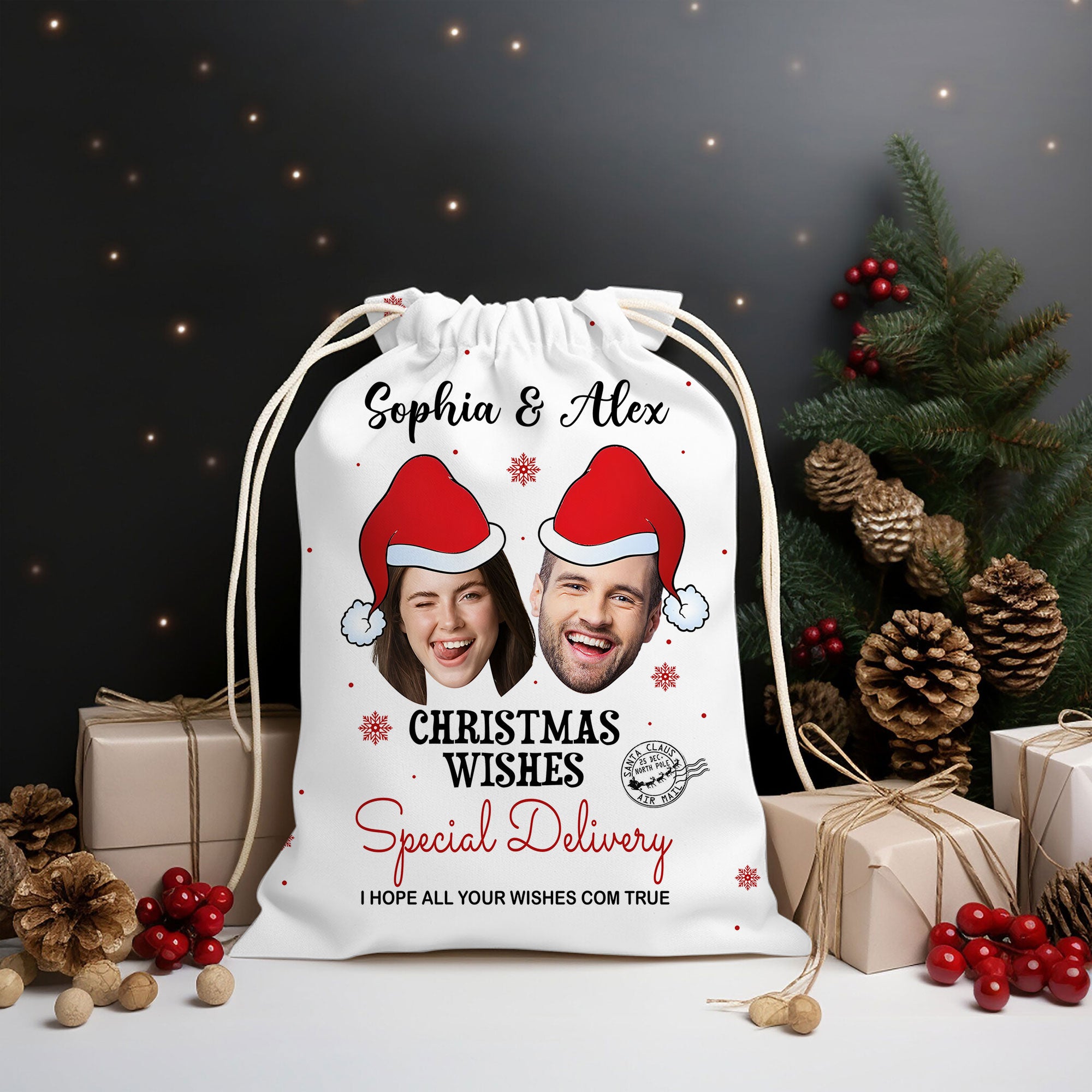 Christmas Gift Custom Photo And Names, Personalized String Bag, Christmas Gift
