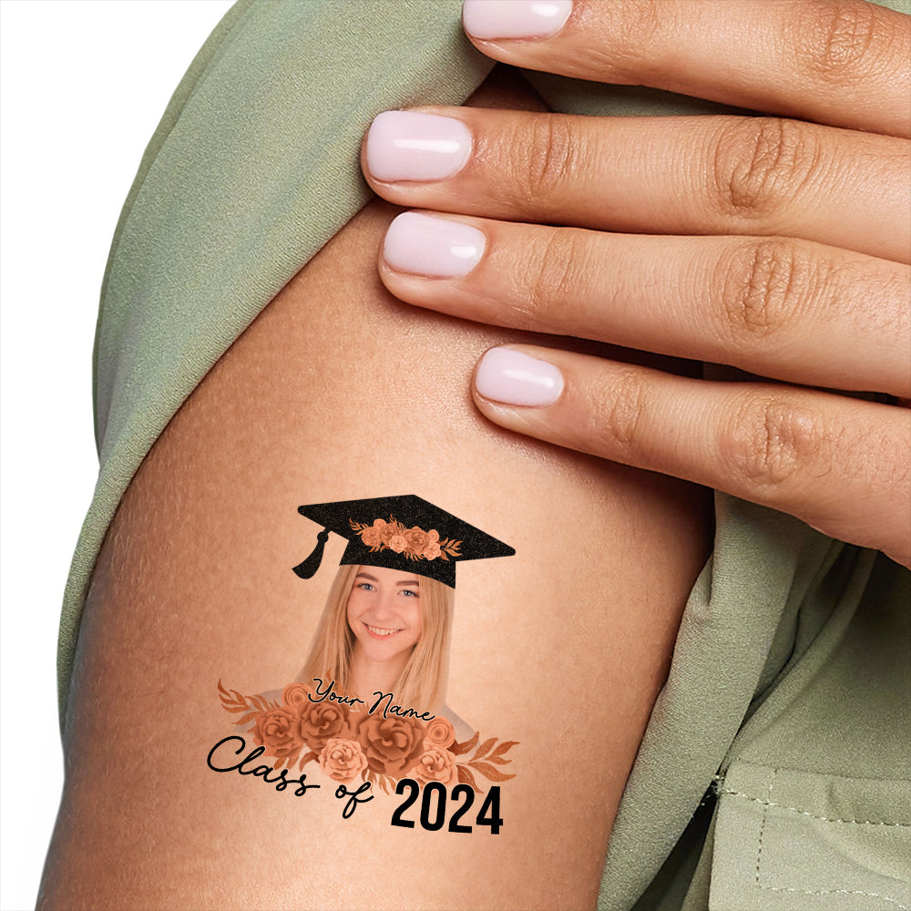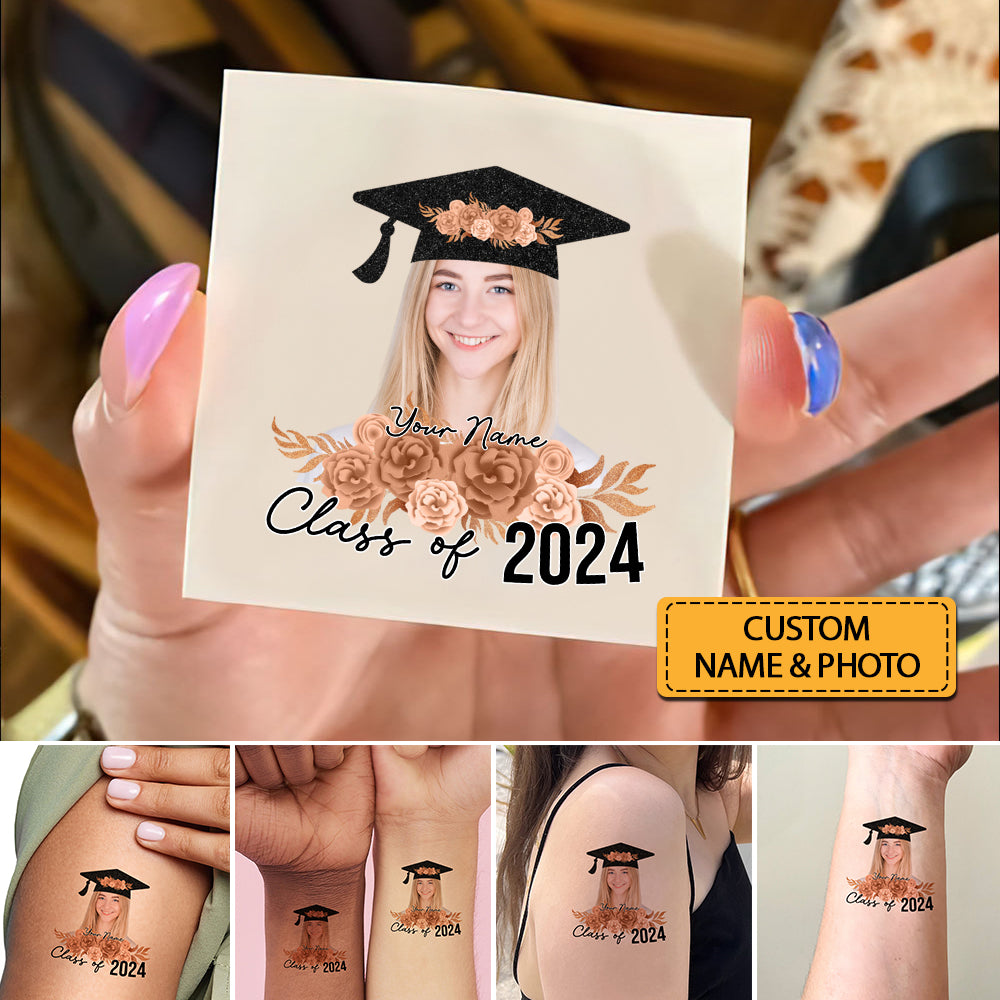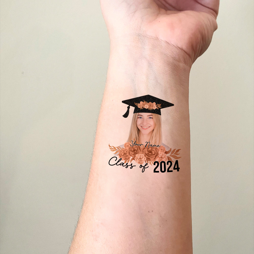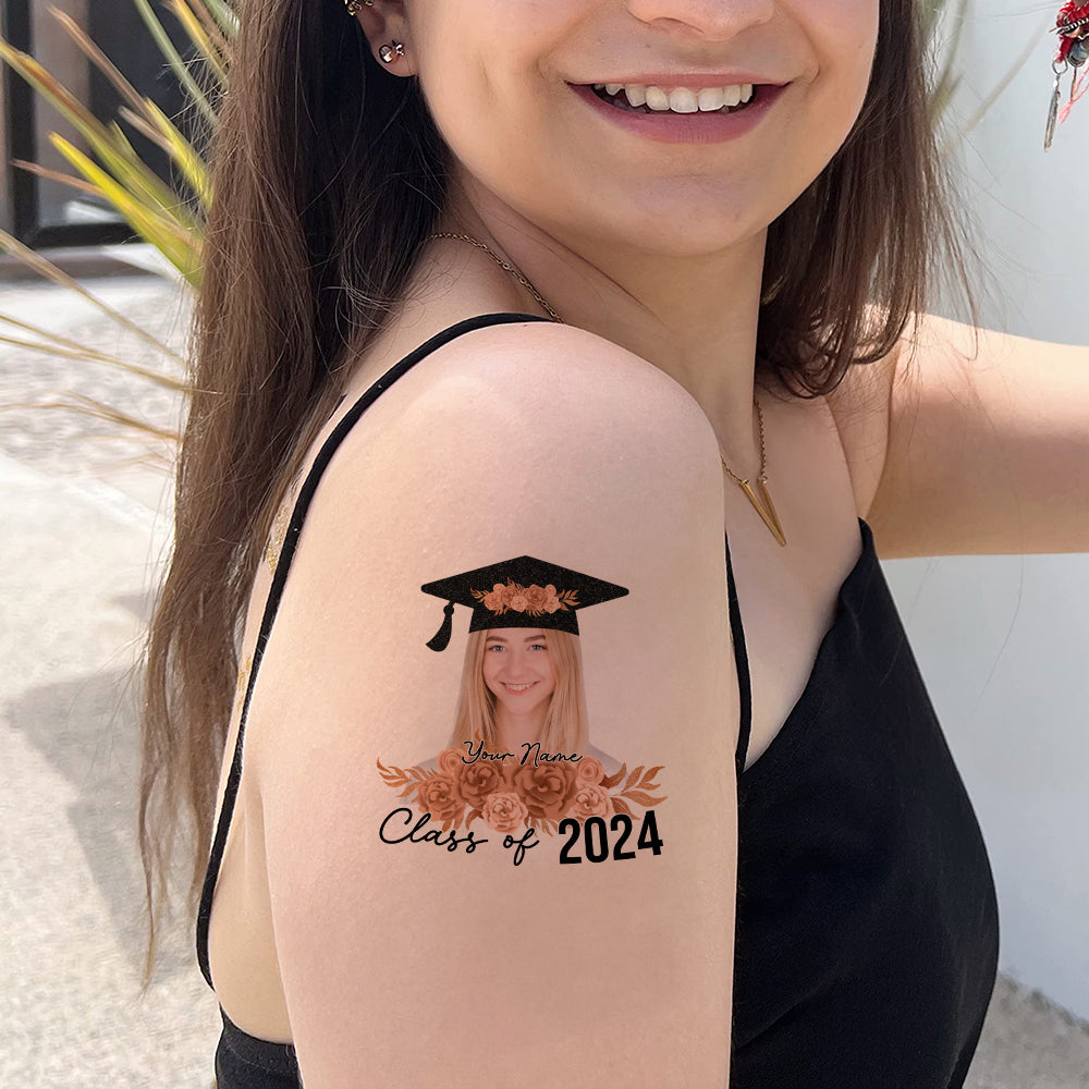 Class Of 2024 Graduation, Custom Color, Your Photo And Name Temporary Tattoo, Personalized Photo And Name, Fake Tattoo, Graduation Gift