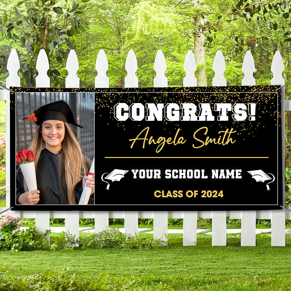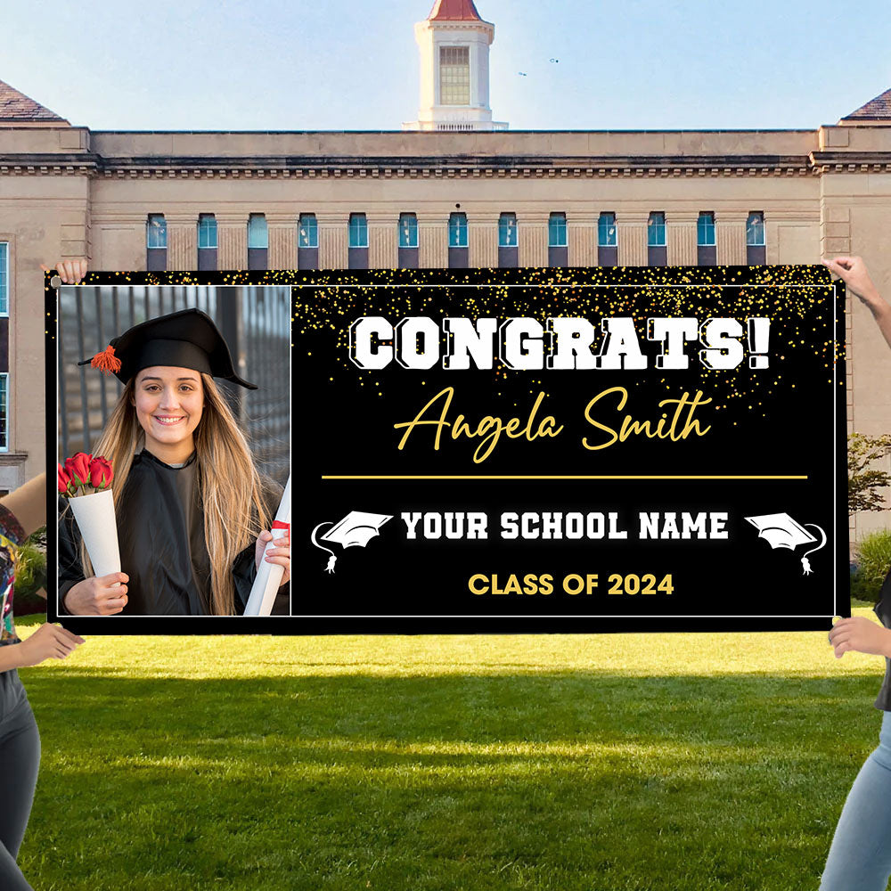 Congrats Class Of 2024 - Personalized Photo And Texts Graduated Banner, Decoration Gifts