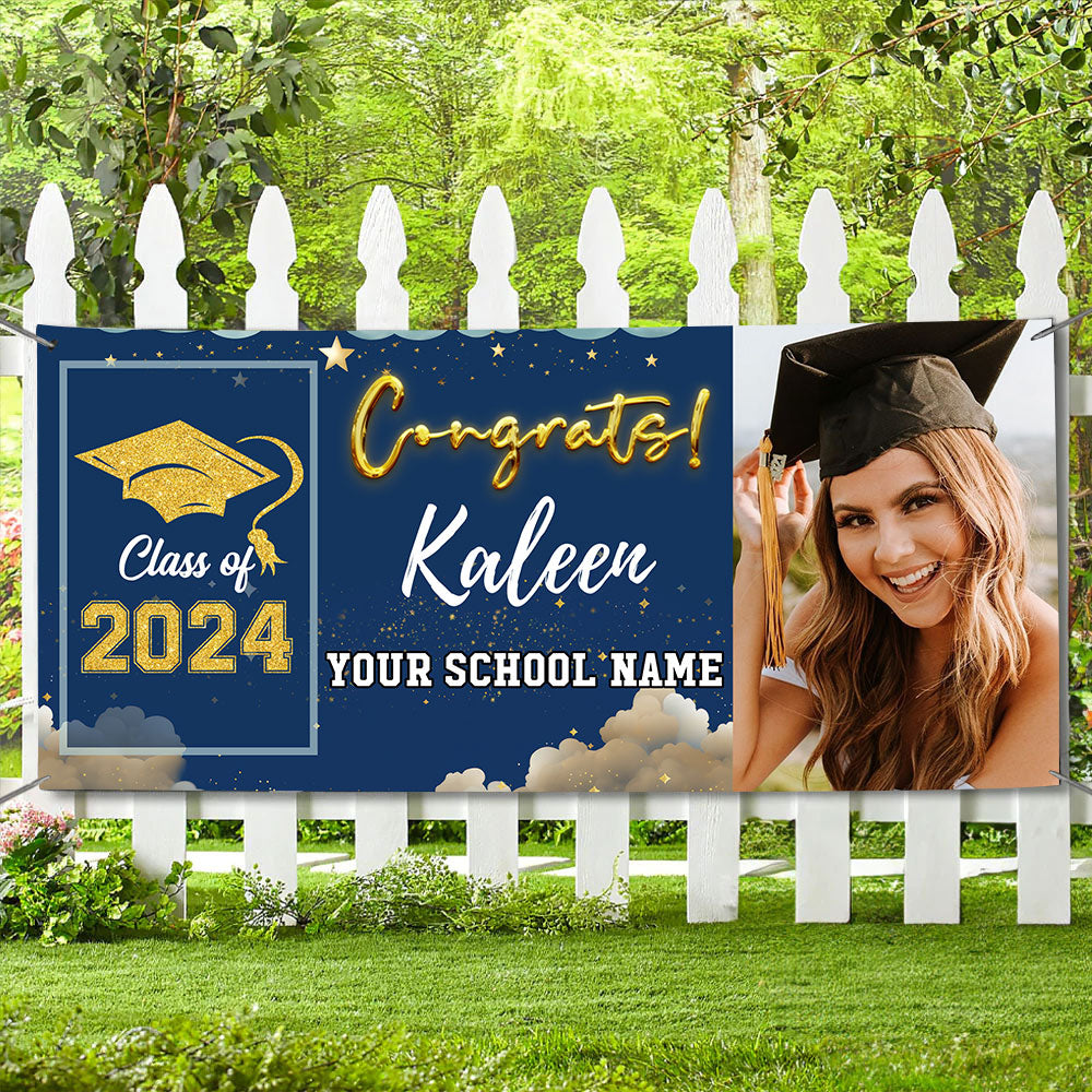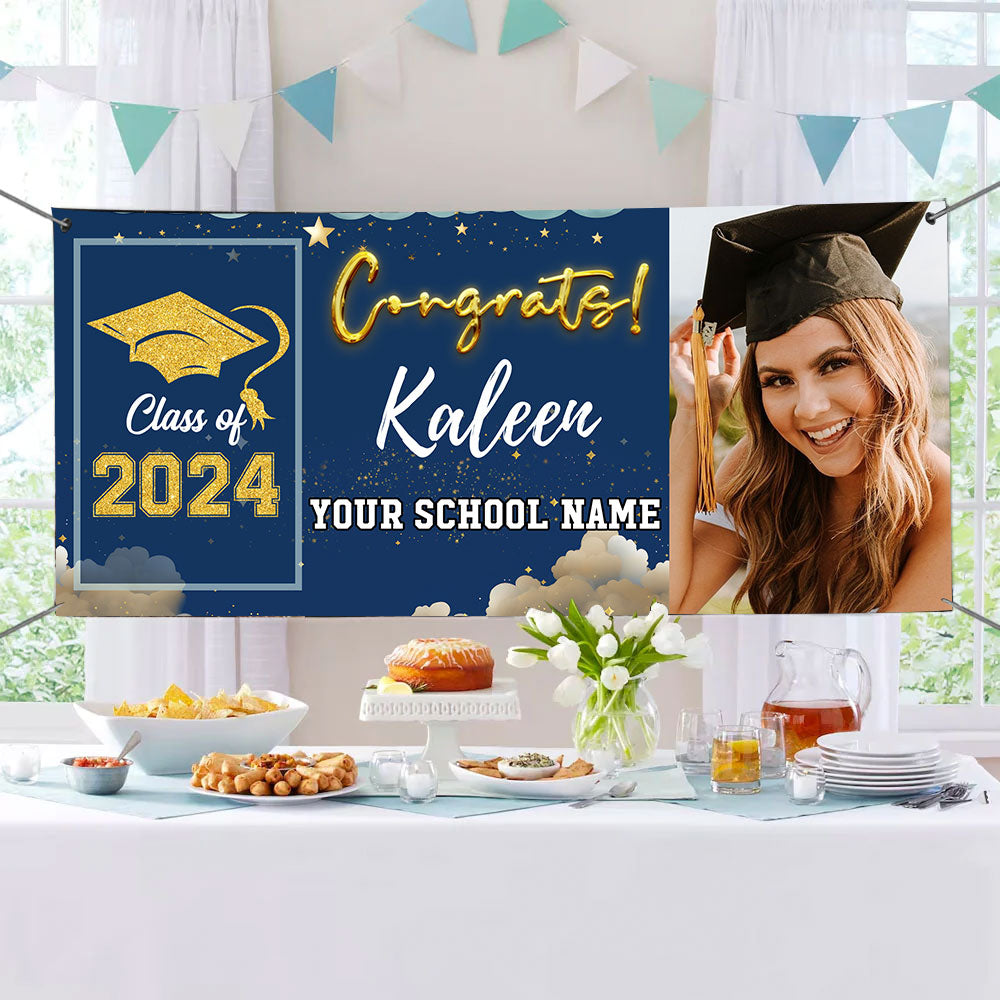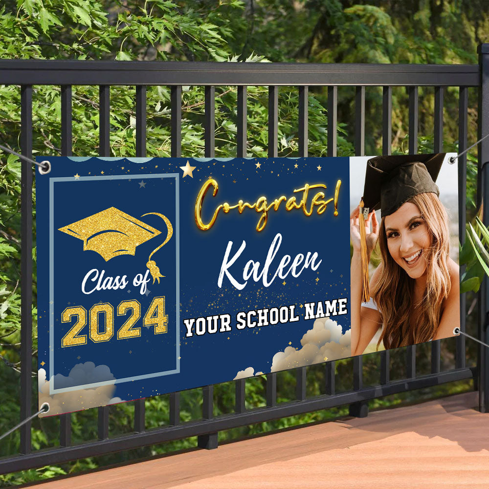 Congrats Class Of 2024- Personalized Photo Graduated Banner - Decoration Gifts