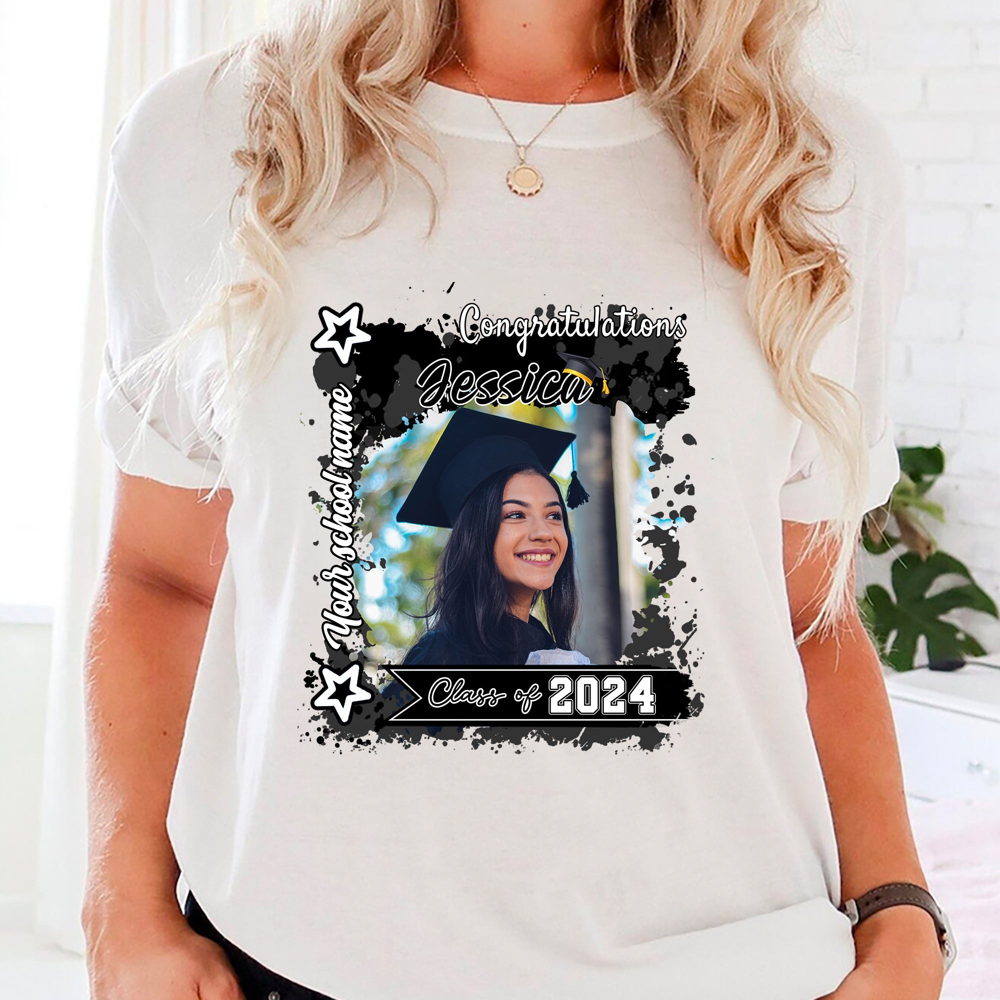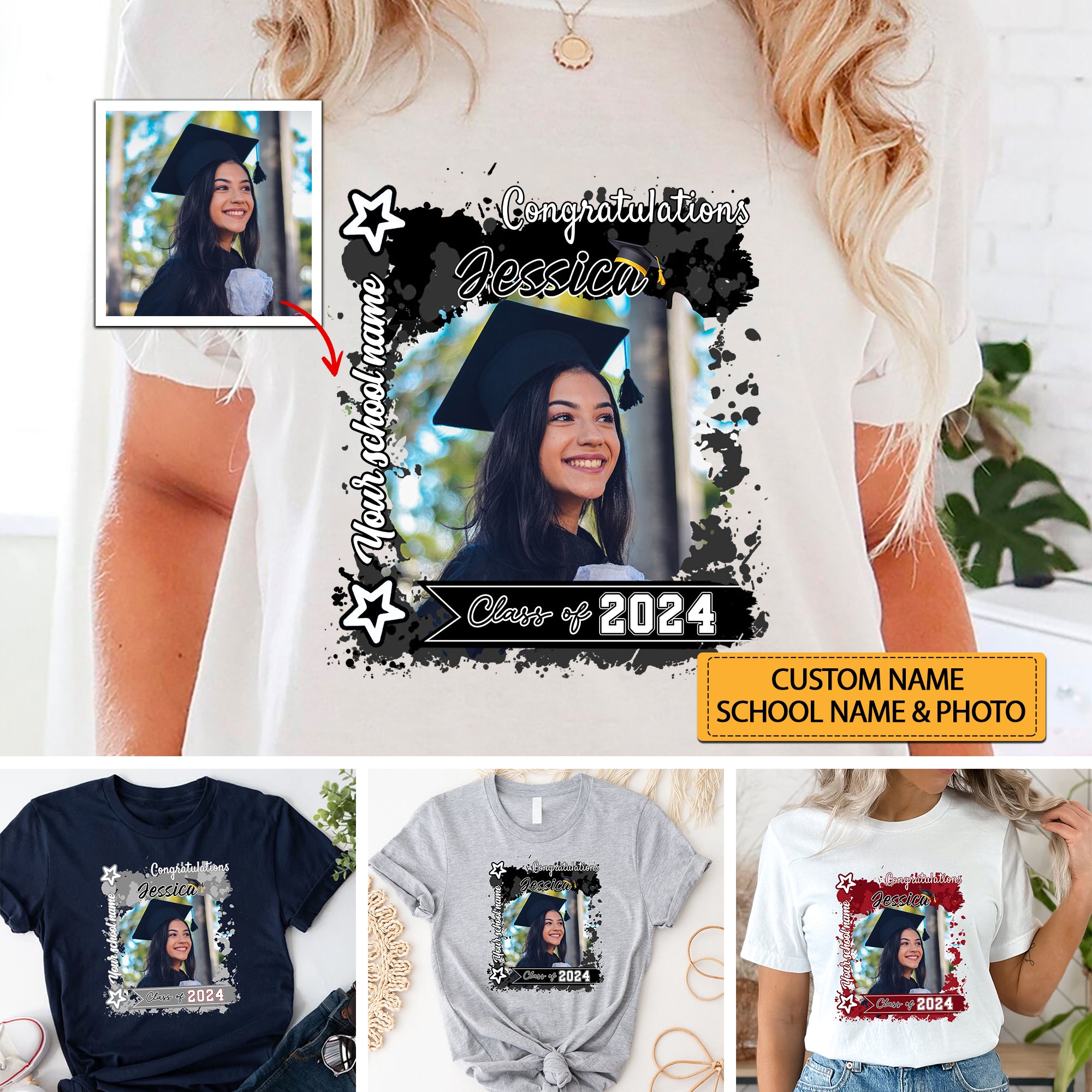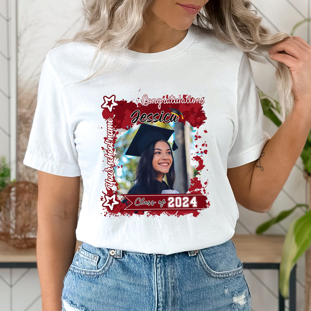 Congratulations Class Of 2024, Custom Color, Photo And Texts - Gift For Graduation - Personalized T-Shirt
