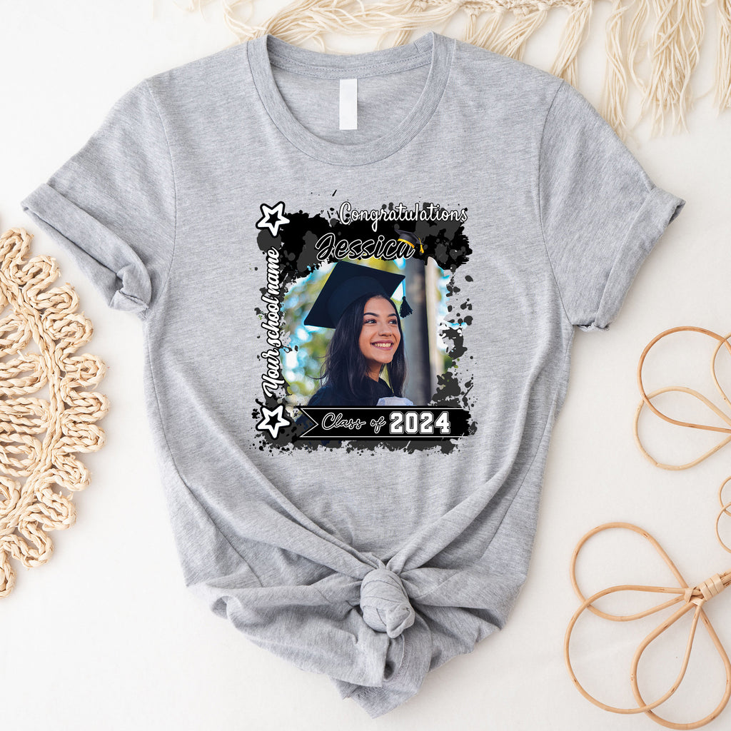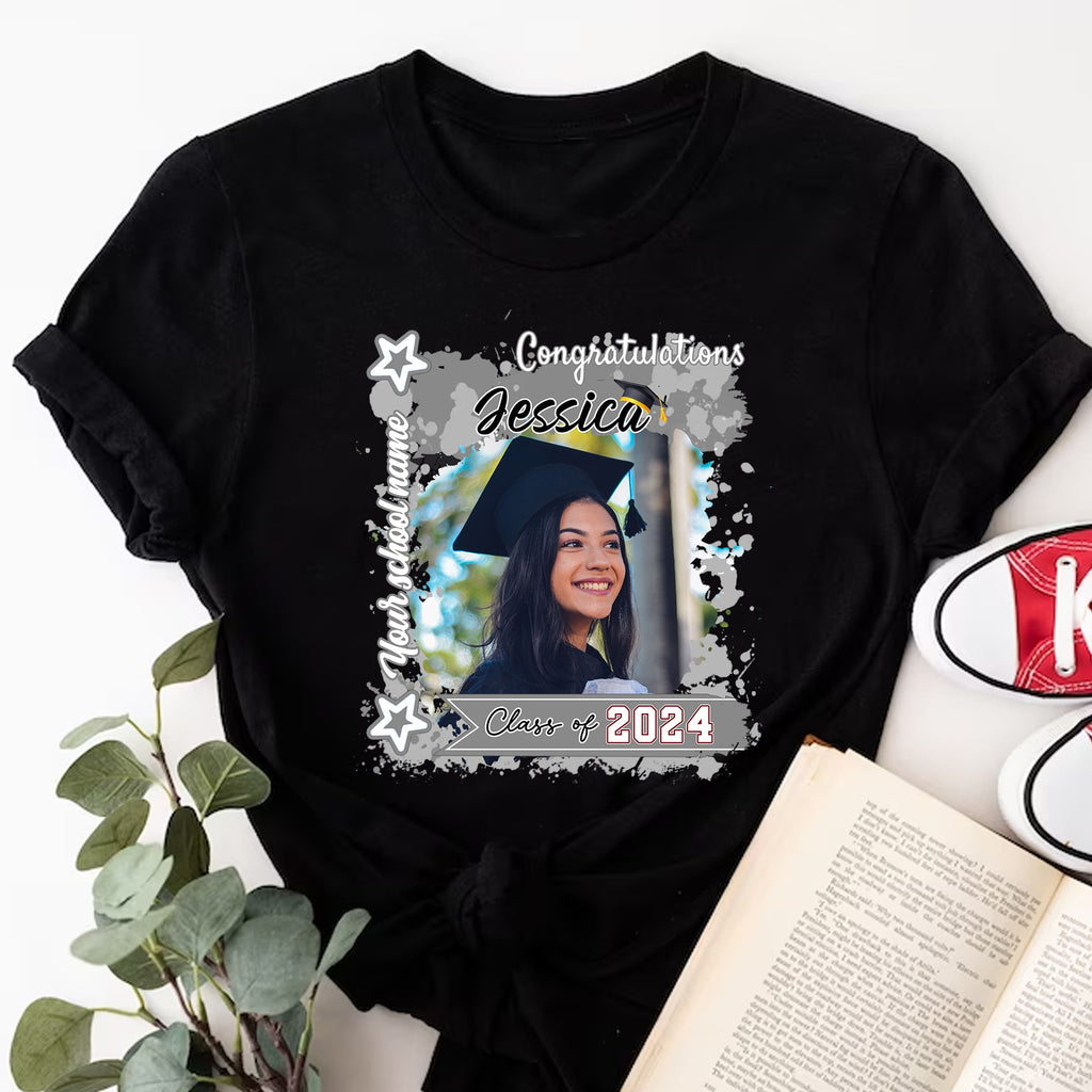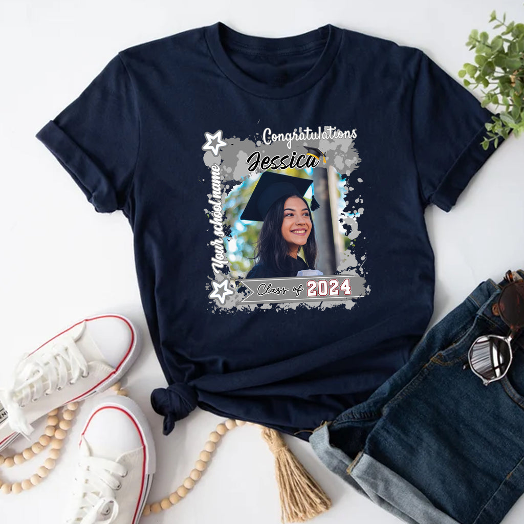 Congratulations Class Of 2024, Custom Color, Photo And Texts - Gift For Graduation - Personalized T-Shirt