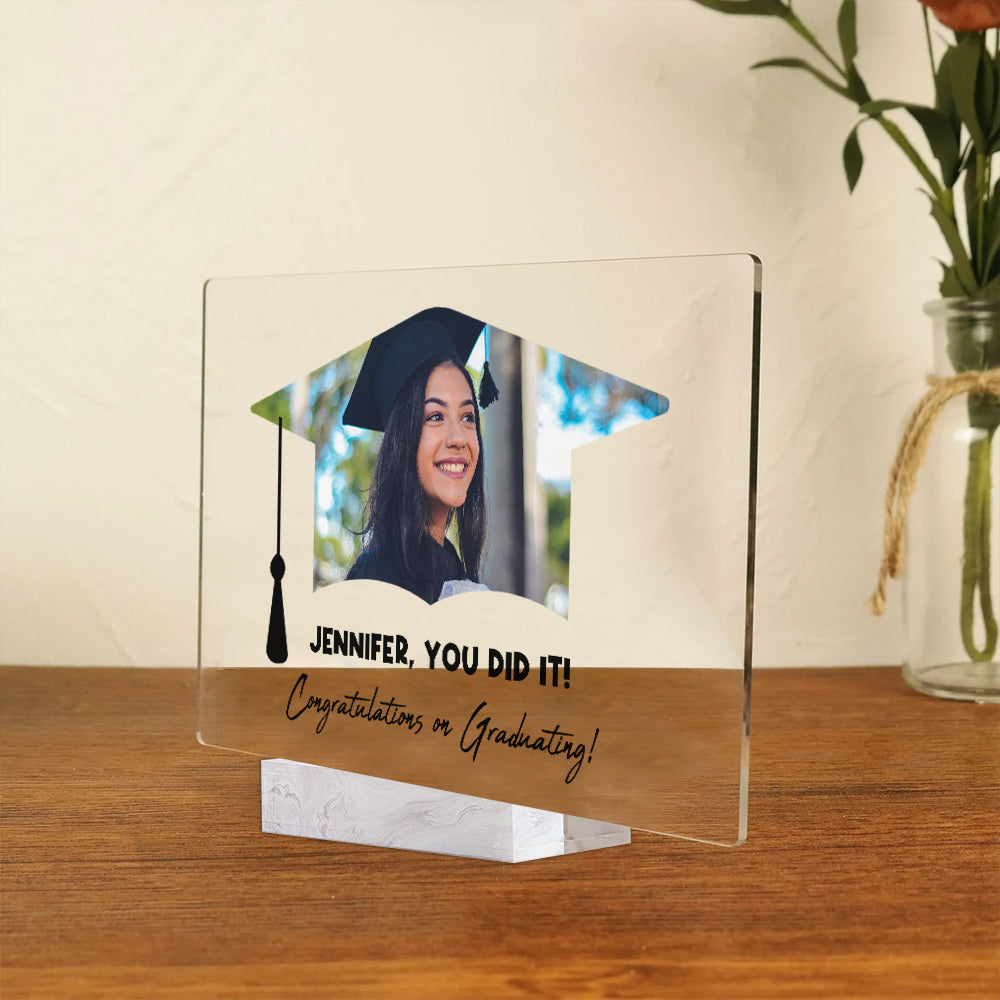 Congratulations On Graduating, Custom Photo And Text - Personalized Acrylic Plaque