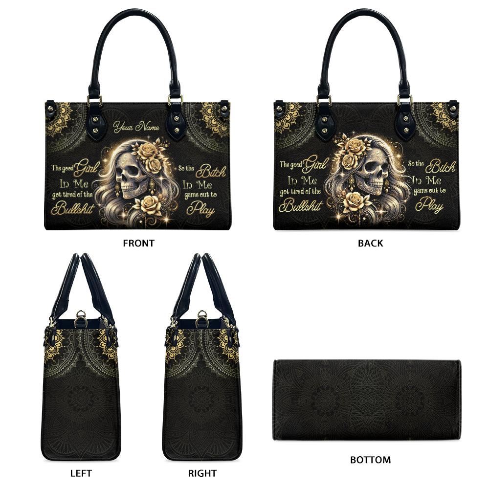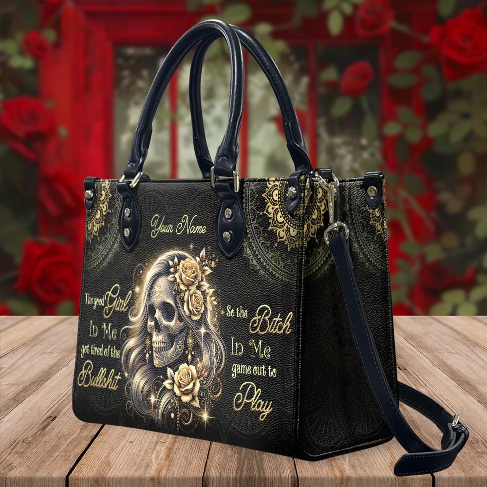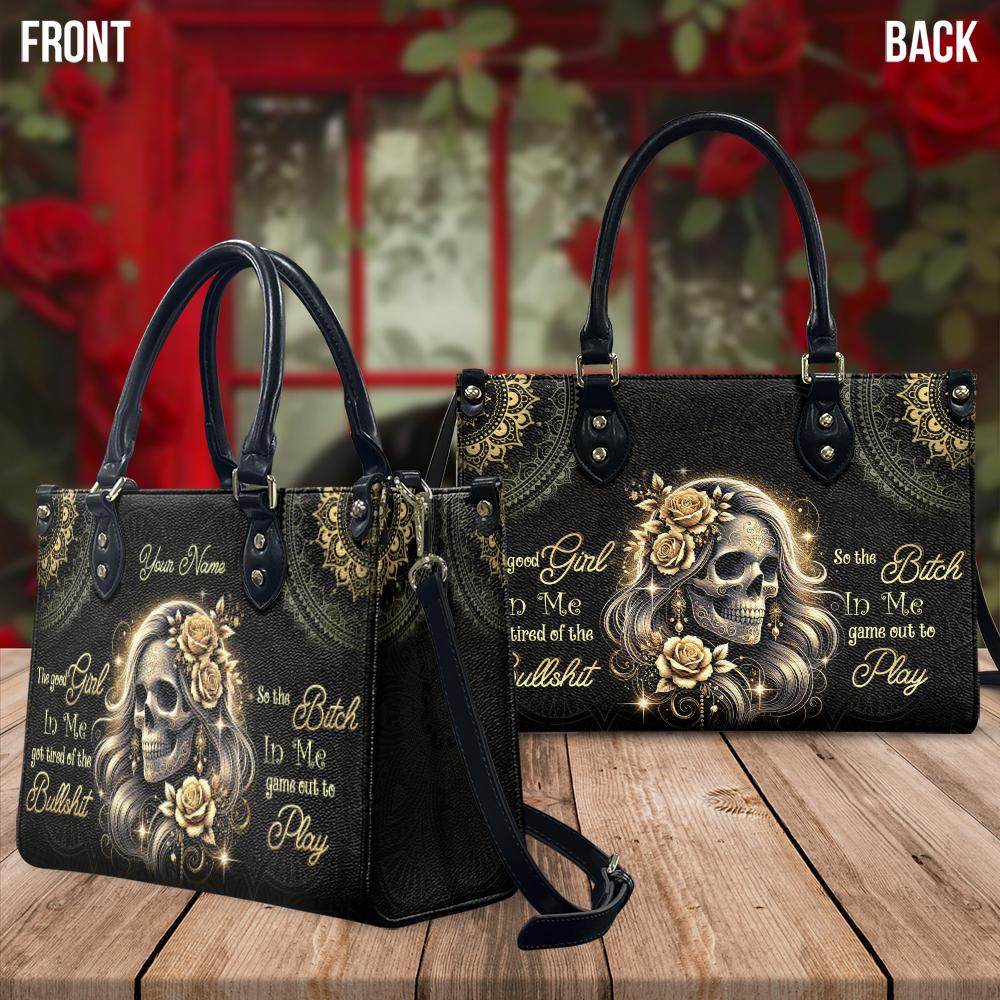 Custom Name Handbag, Skull Lady Evil Personalized Leather Handbag