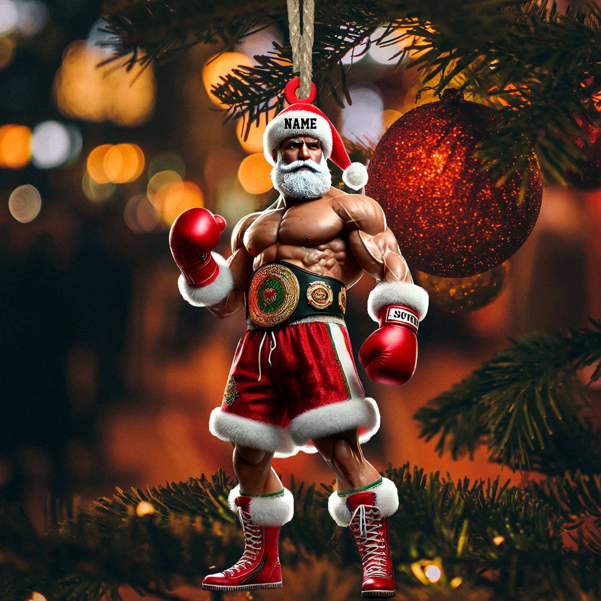 Custom Ornament, Christmas Boxing Santa Ornament, Christmas Decor