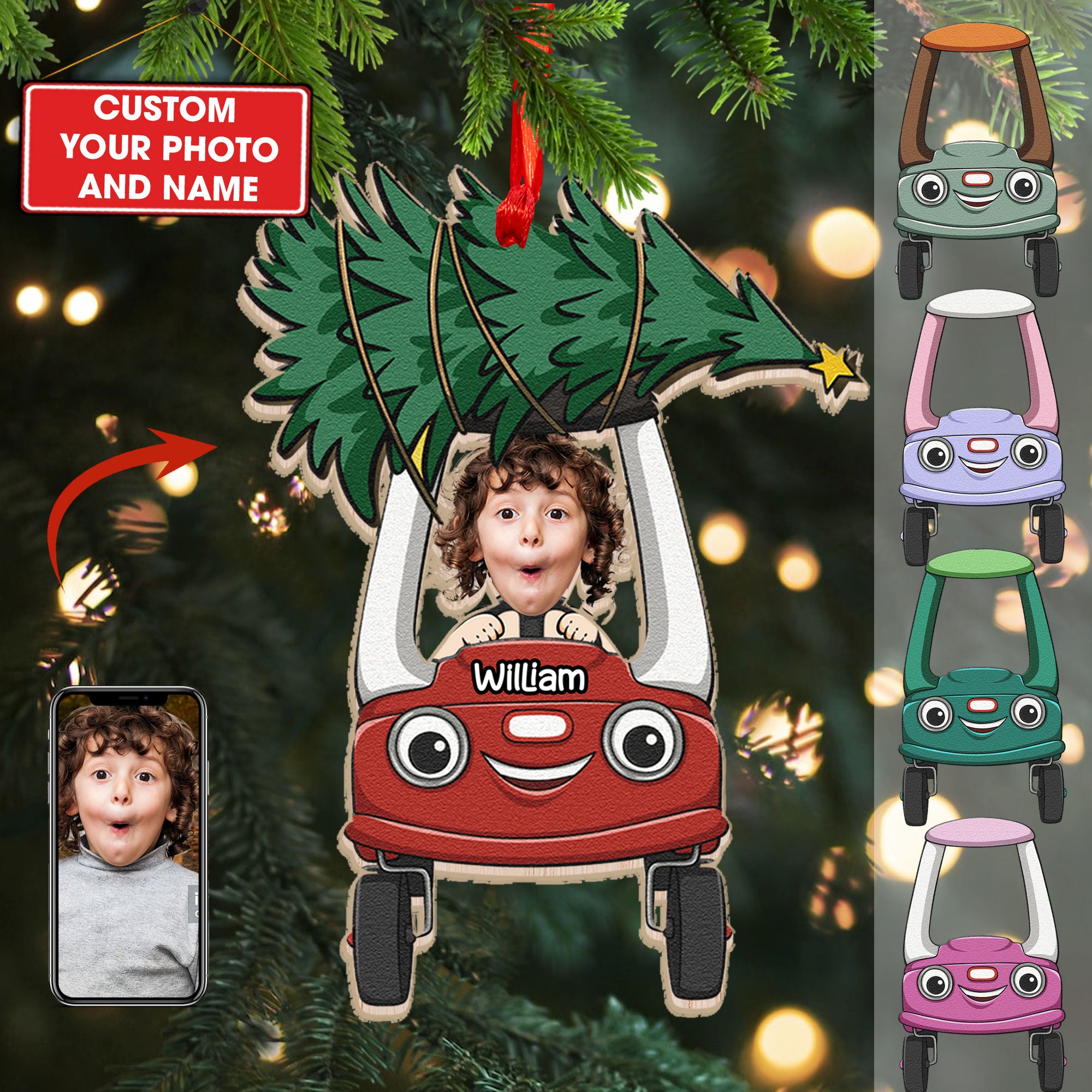 Custom Wooden Ornament, Kid On Car Ornament, Christmas Decor