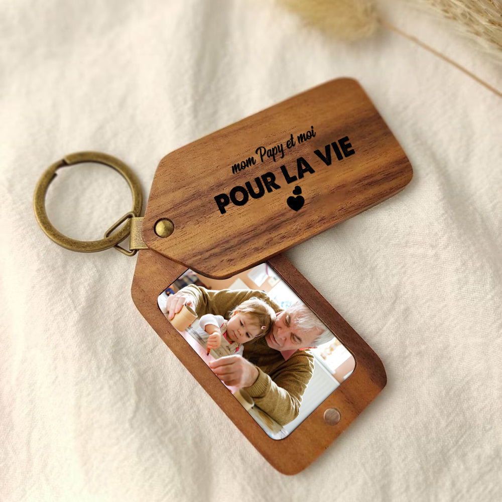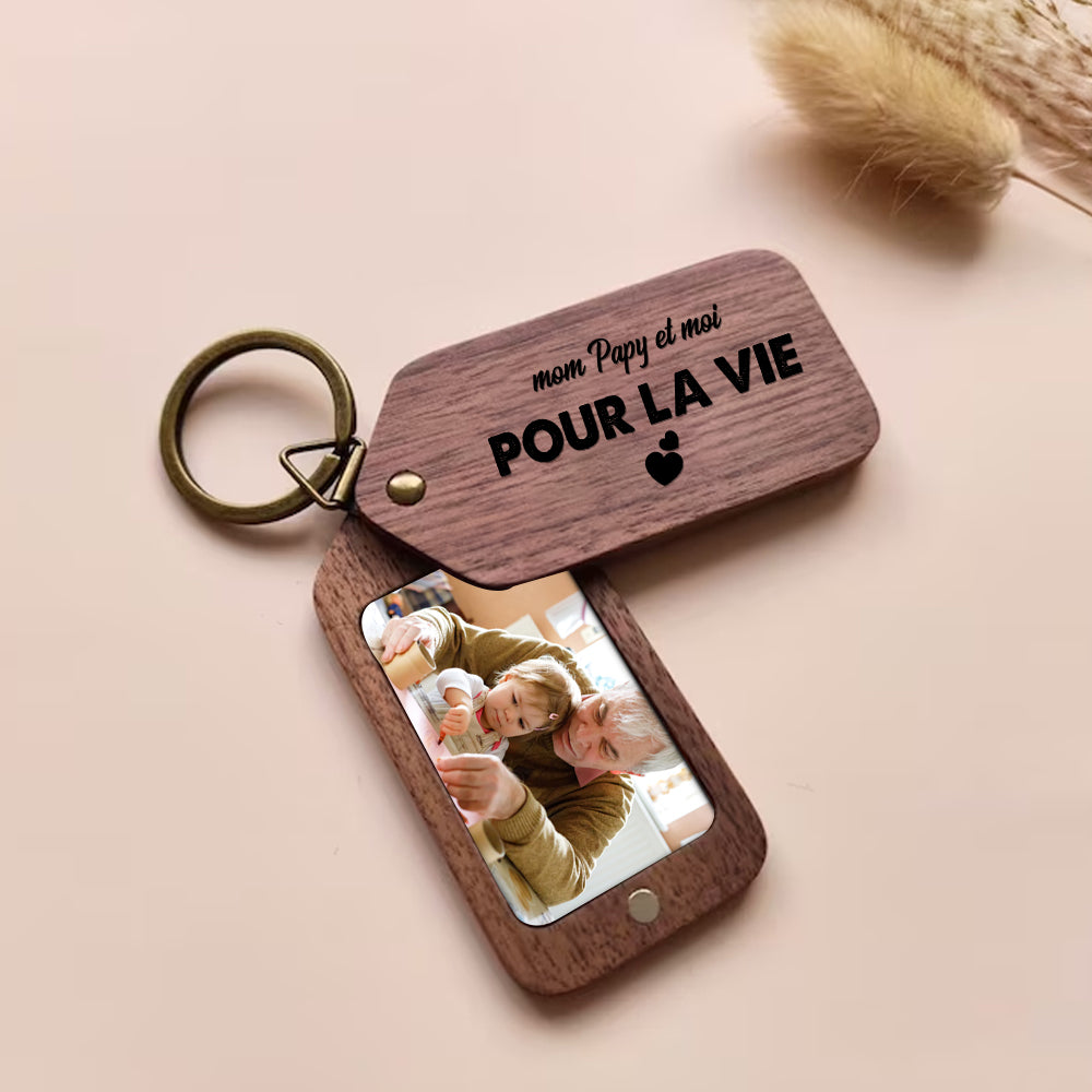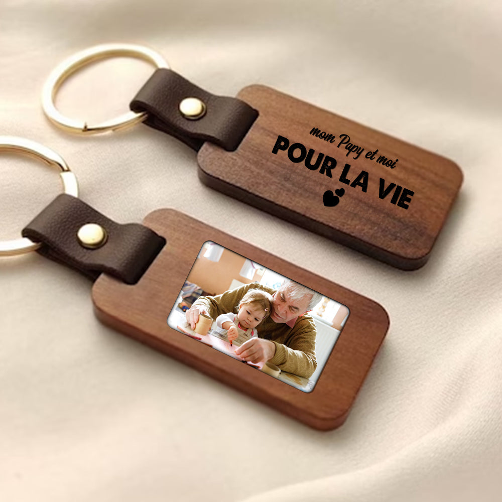 Custom Photo And Your Own Texts - Personalized 2 Sides Wooden Keychain - Gift For Family