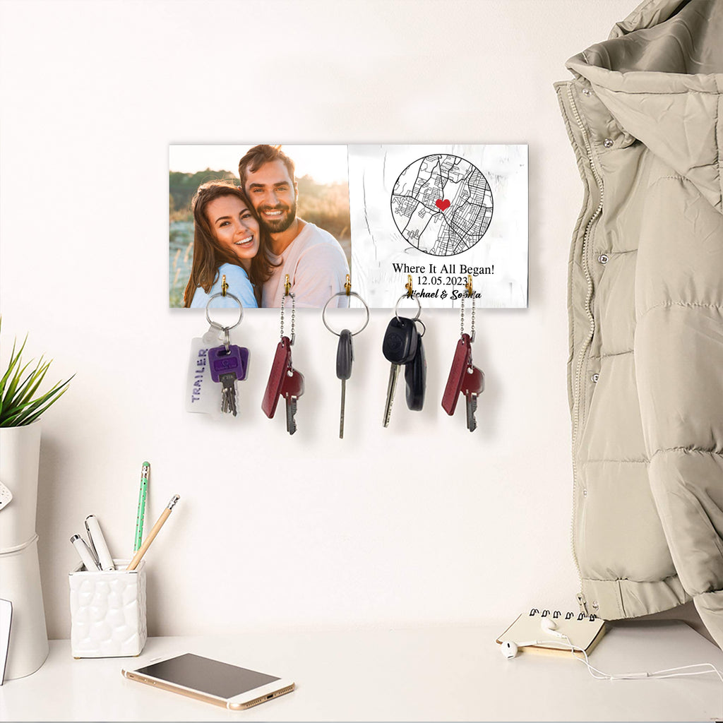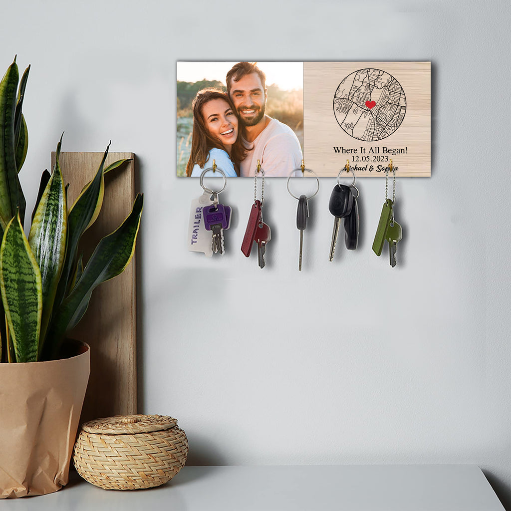 Family Photo Key Hanger - Custom Photo, Background And Texts - Personalized Key Hanger, Key Holder -Gift For Family