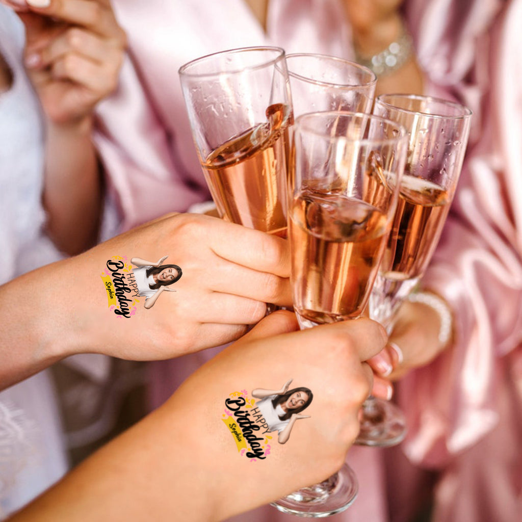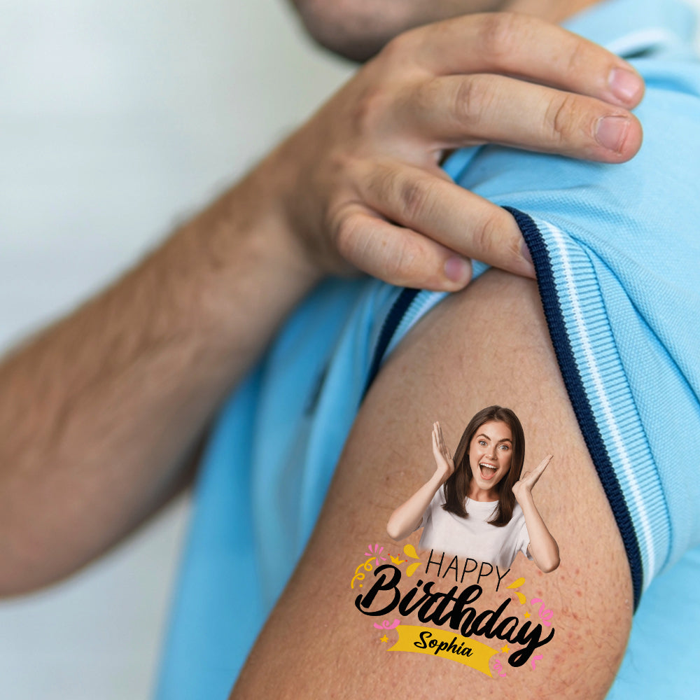 Full Colorful Birthday, Custom Photo And Text Temporary Tattoo, Personalized Tattoo, Fake Tattoo