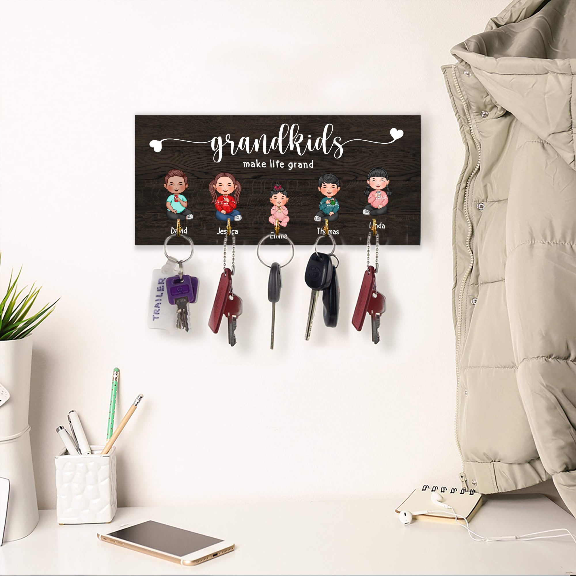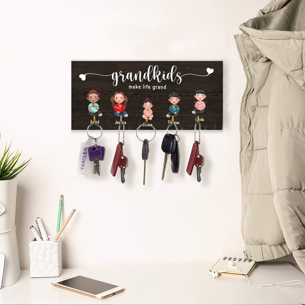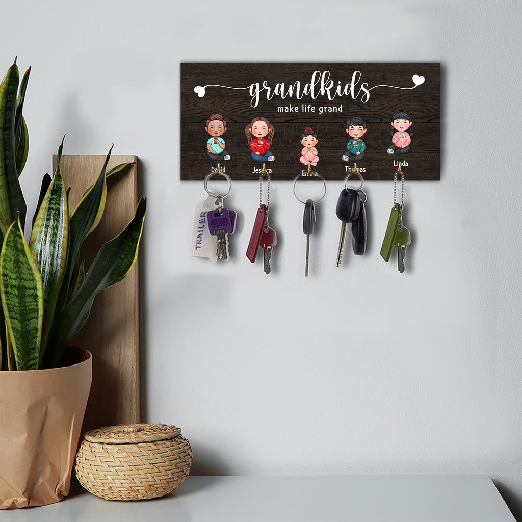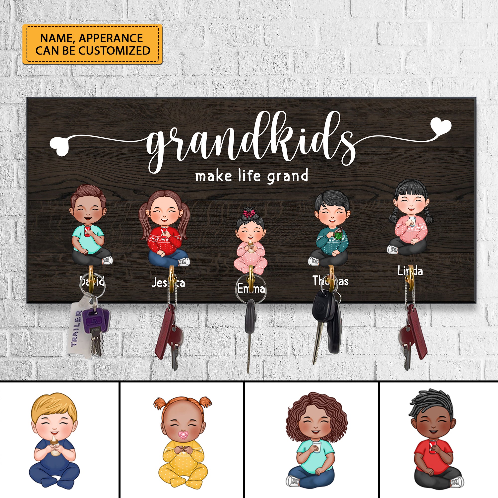 Grandkids Make Life Grand - Custom Appearances And Names - Personalized Key Hanger, Key Holder -Gift For Family