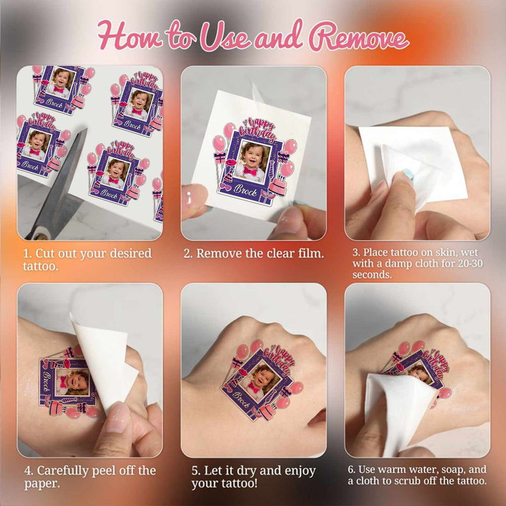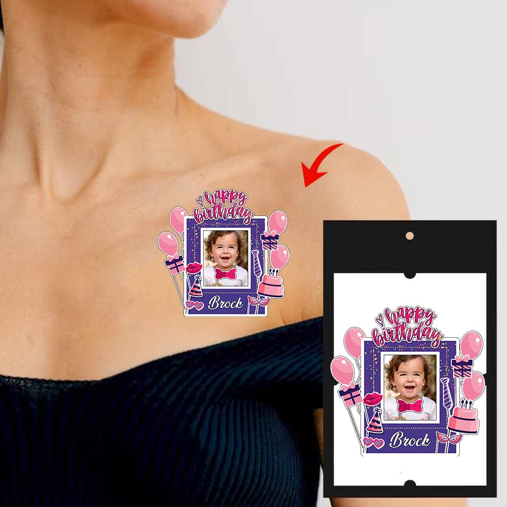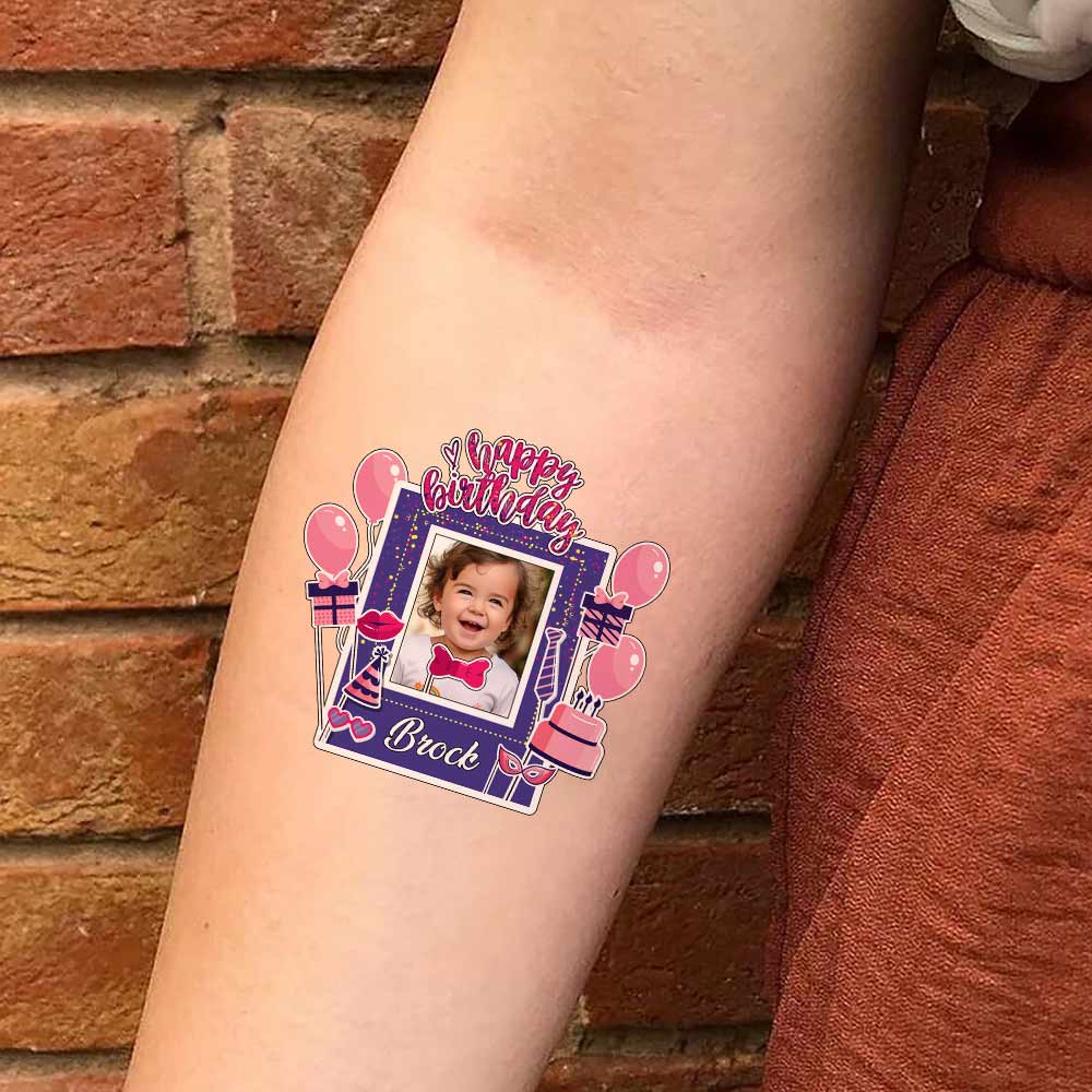 Happy Birthday It's Party Custom Photo And Text Temporary Tattoo, Personalized Tattoo, Fake Tattoo