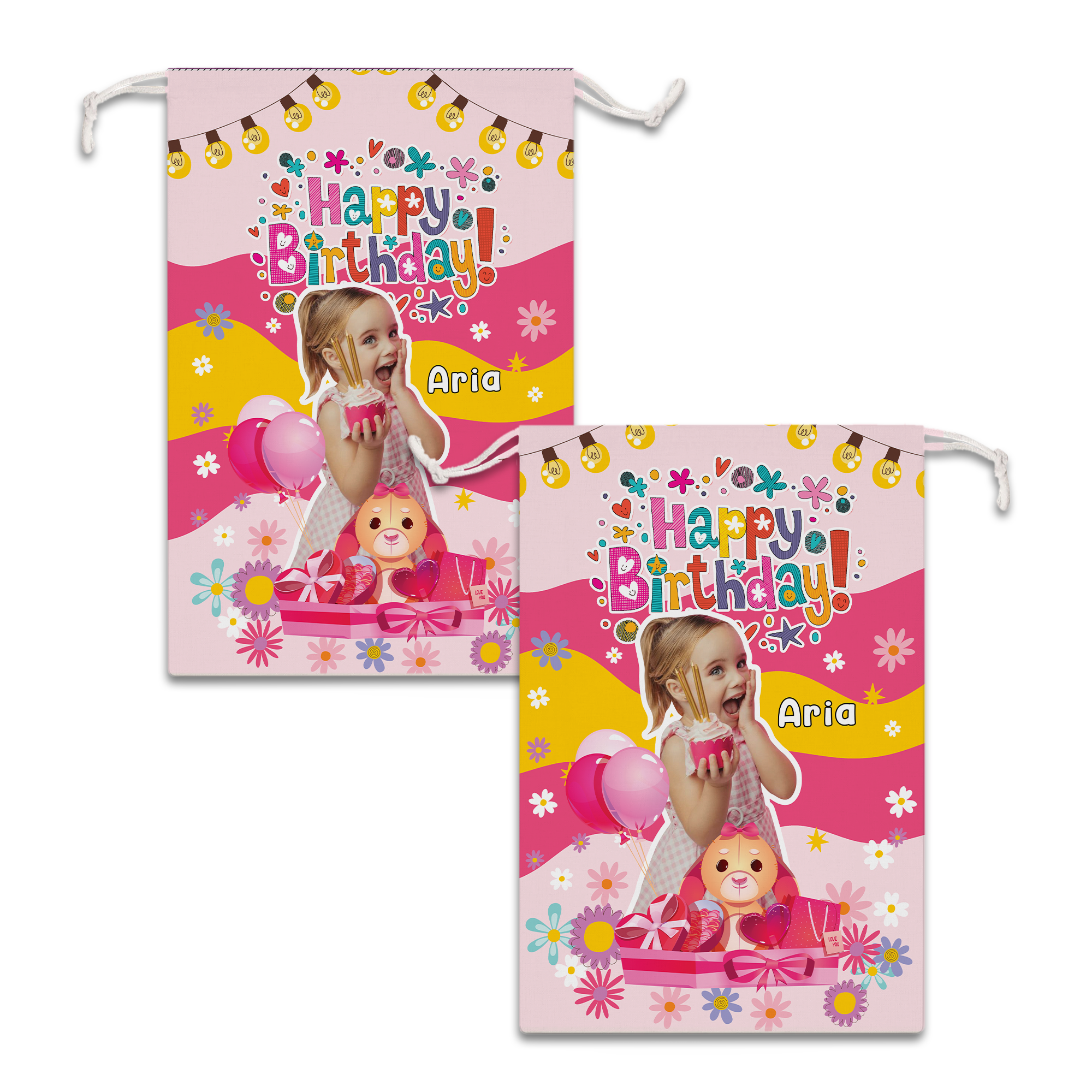 Happy Cute Kid Birthday Bag Personalized Christmas String Bag