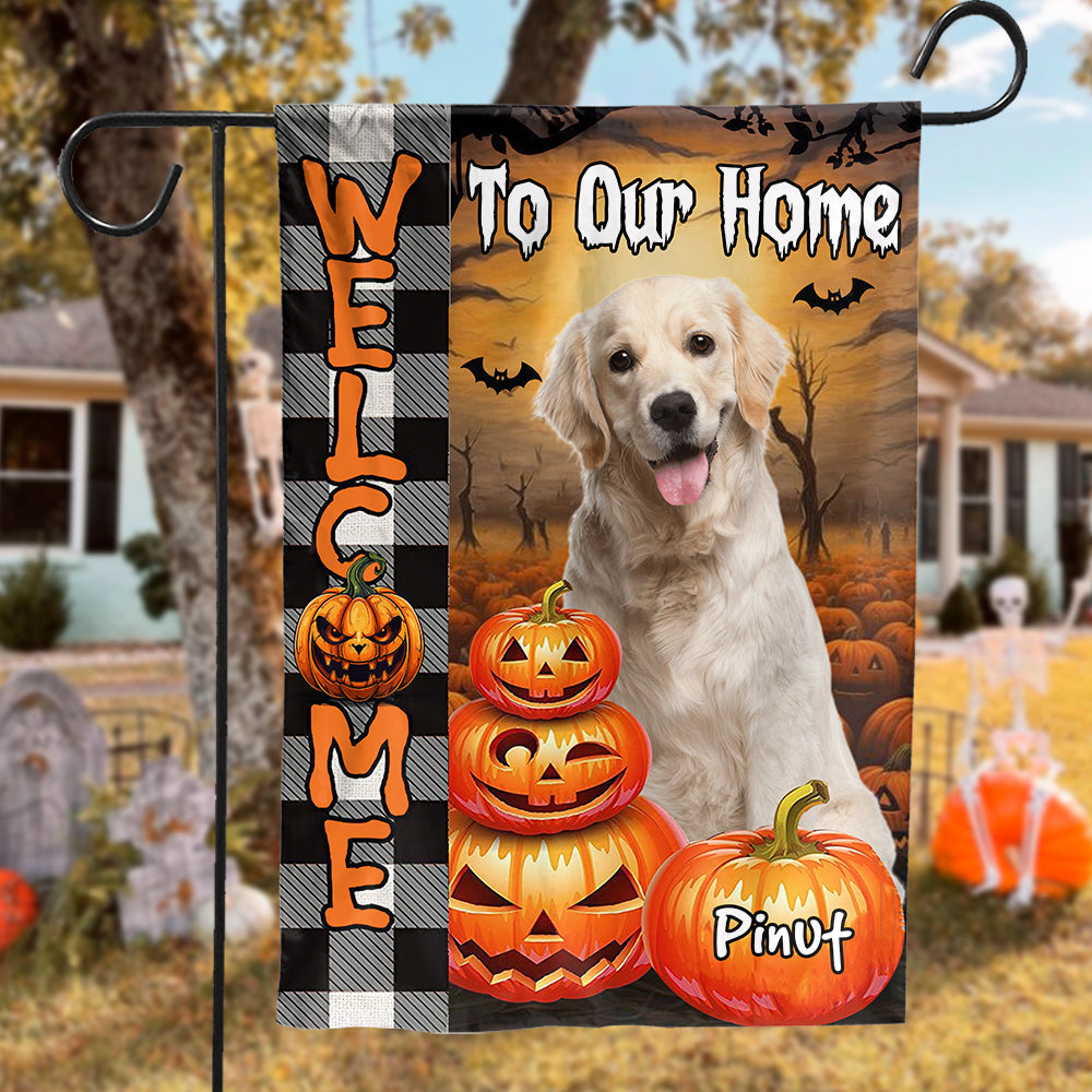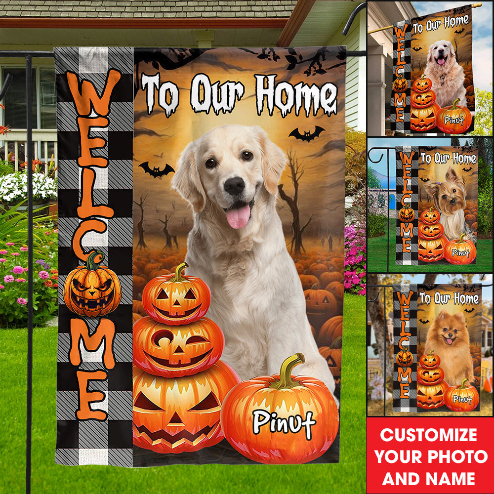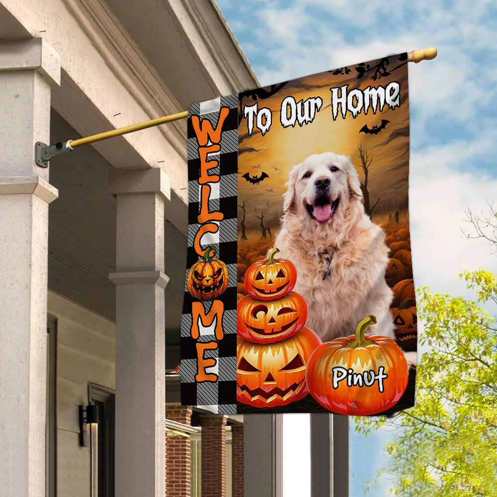 Happy Halloween Flag - Personalized Pet Photo And Name Flag - Gift For Pet Lovers, Halloween Gift