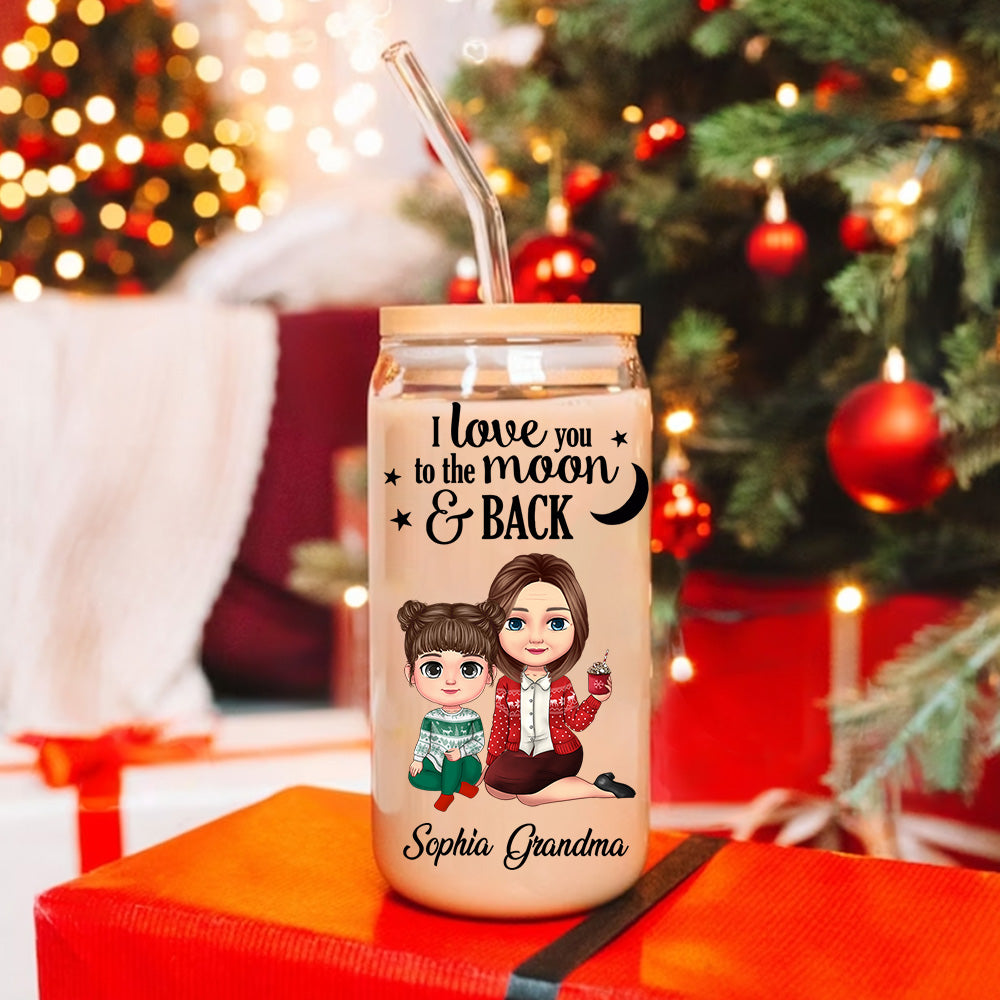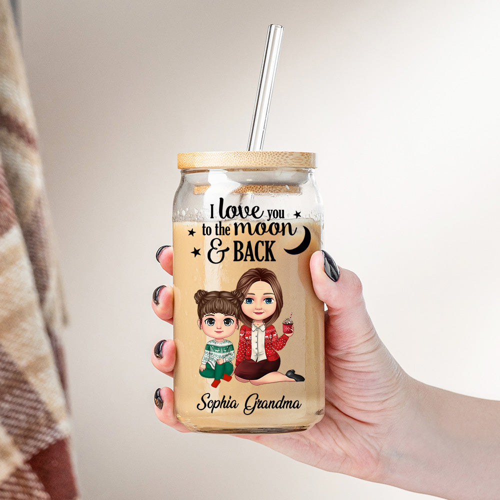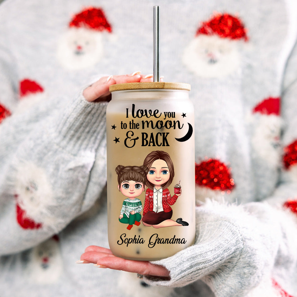 I Love You To The Moon And Back - Customization Kid And Grandma Glass Bottle, Frosted Bottle, Gift For Family, Christmas Gift