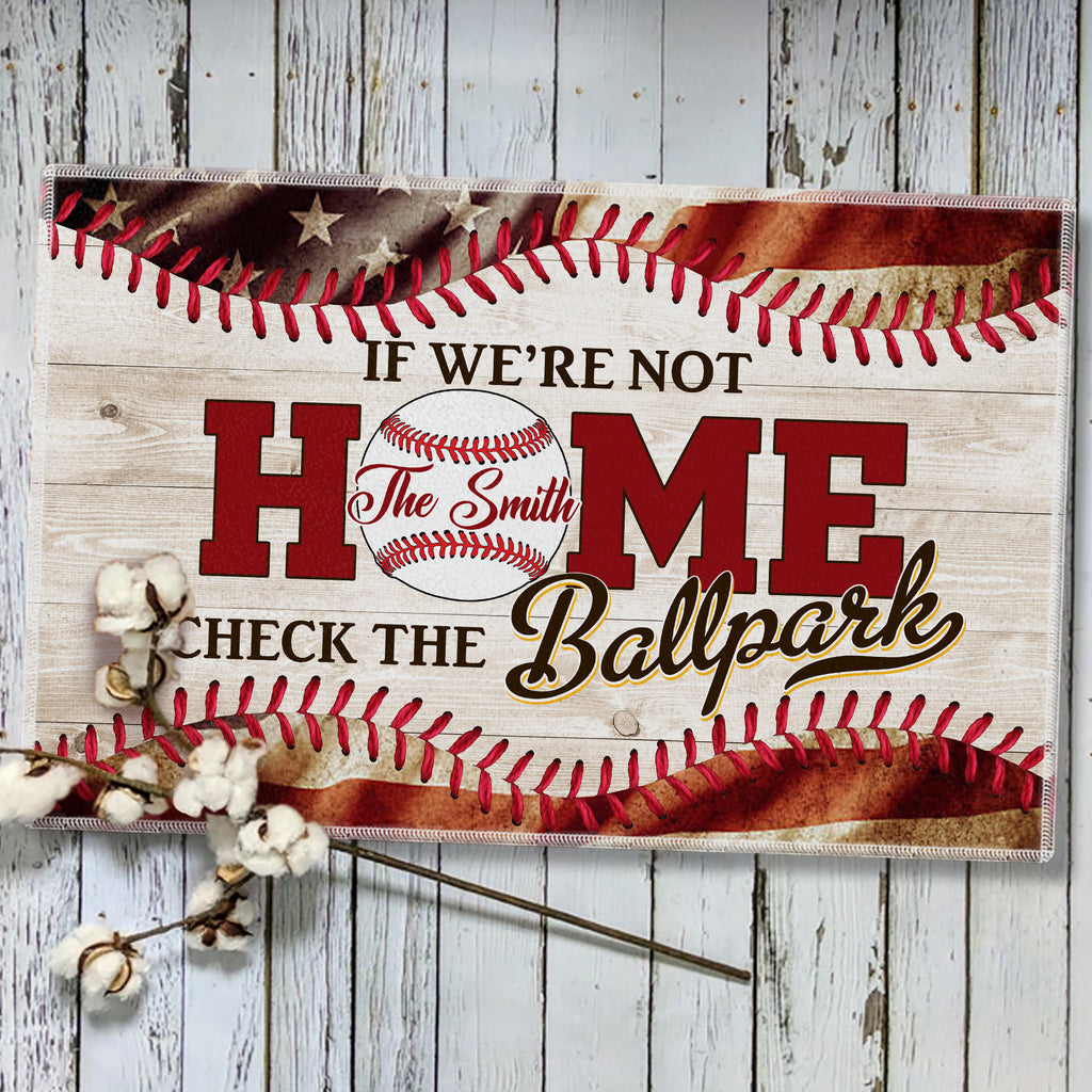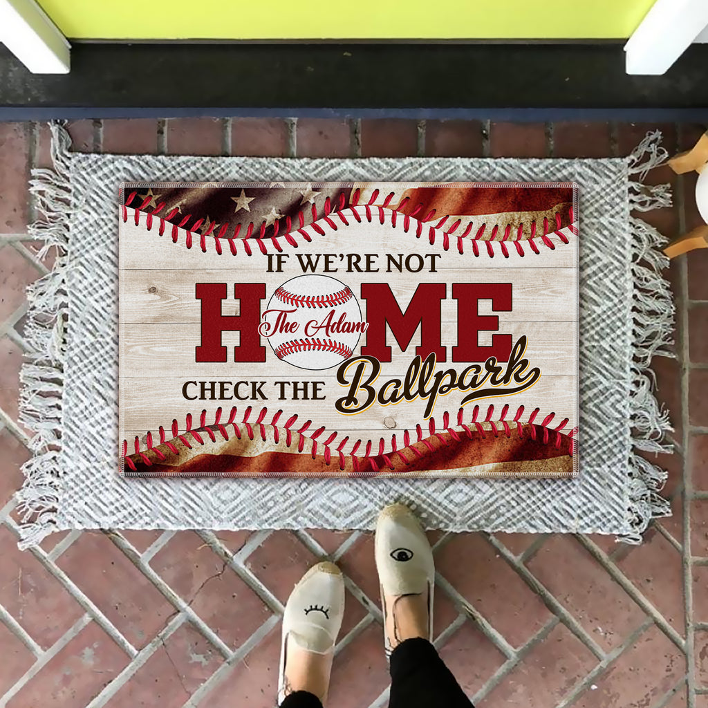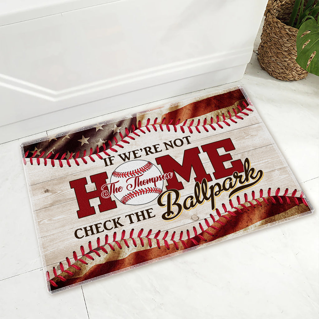 If We Are Not Home - Check The Ballpark, Personalized Baseball Doormat, Home Decor For Baseball Lovers