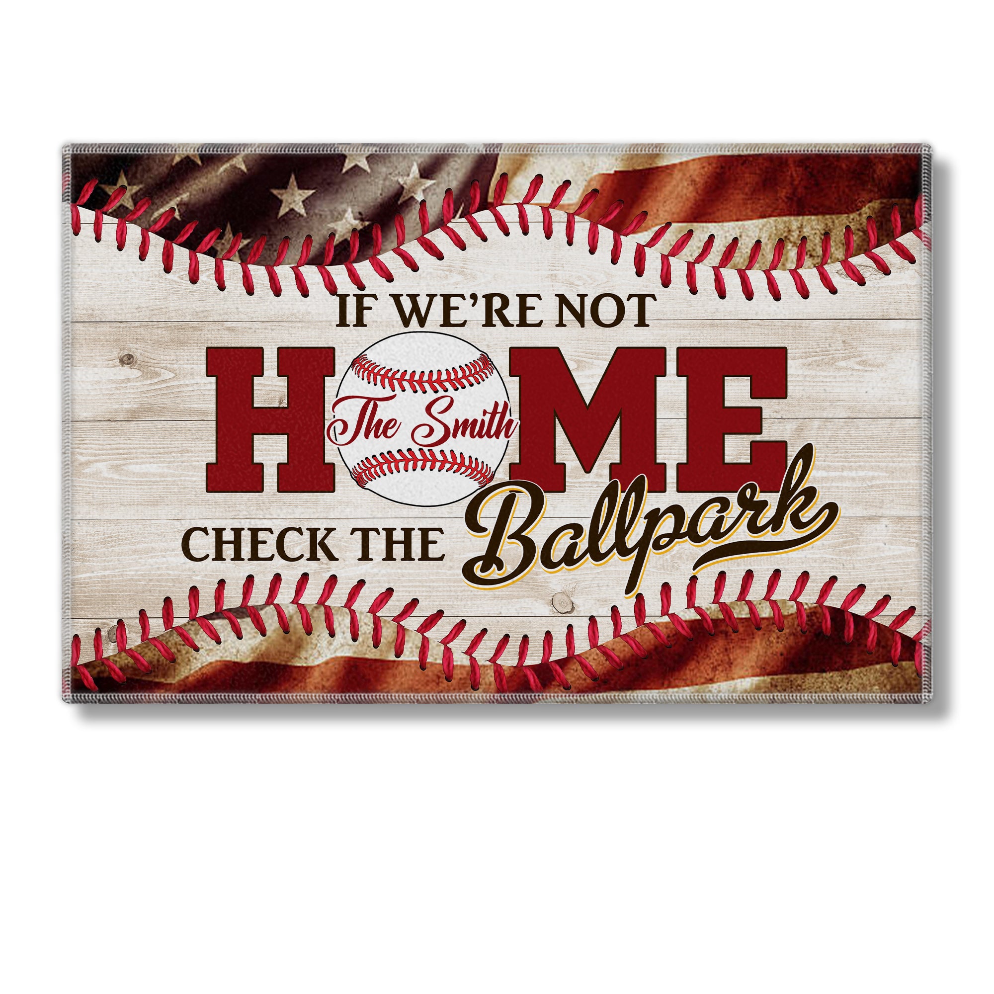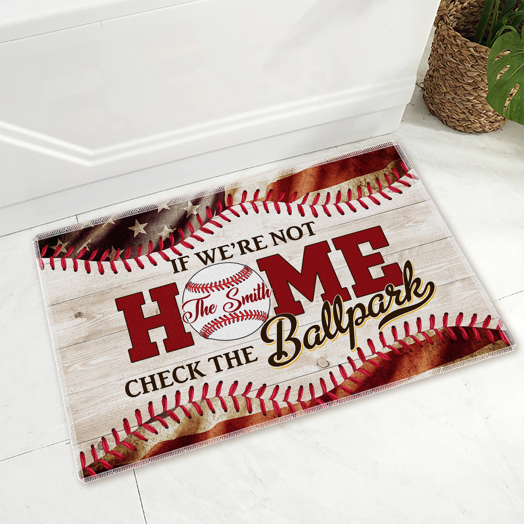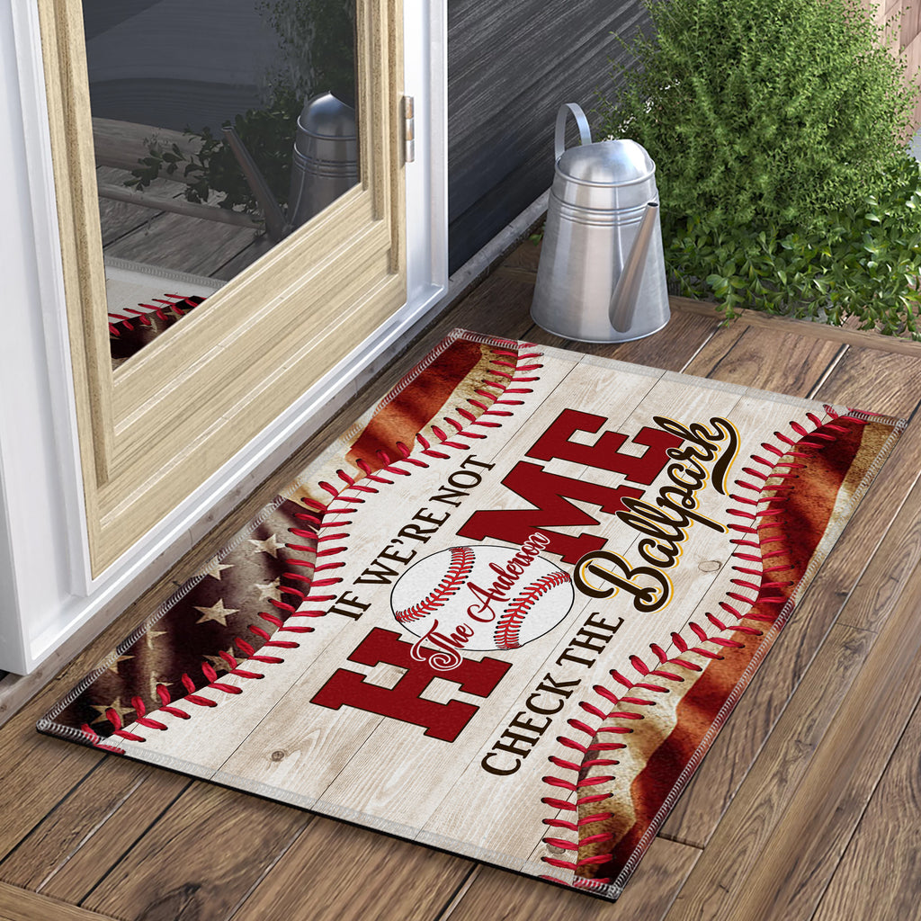 If We Are Not Home - Check The Ballpark, Personalized Baseball Doormat, Home Decor For Baseball Lovers