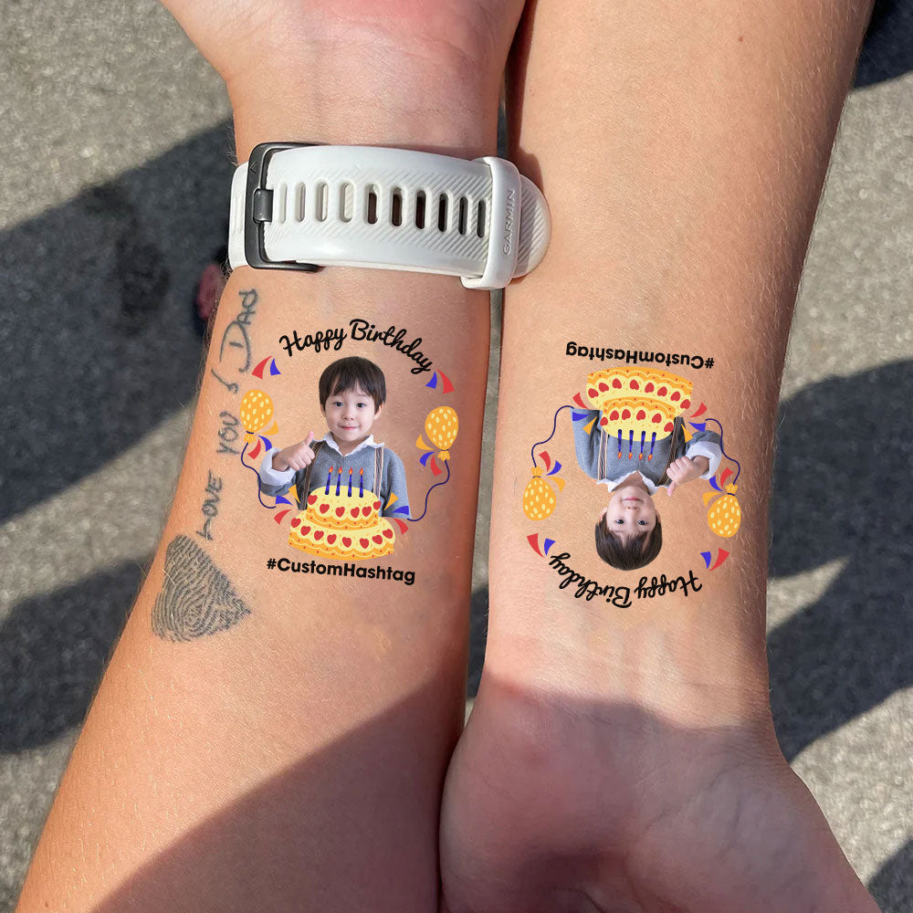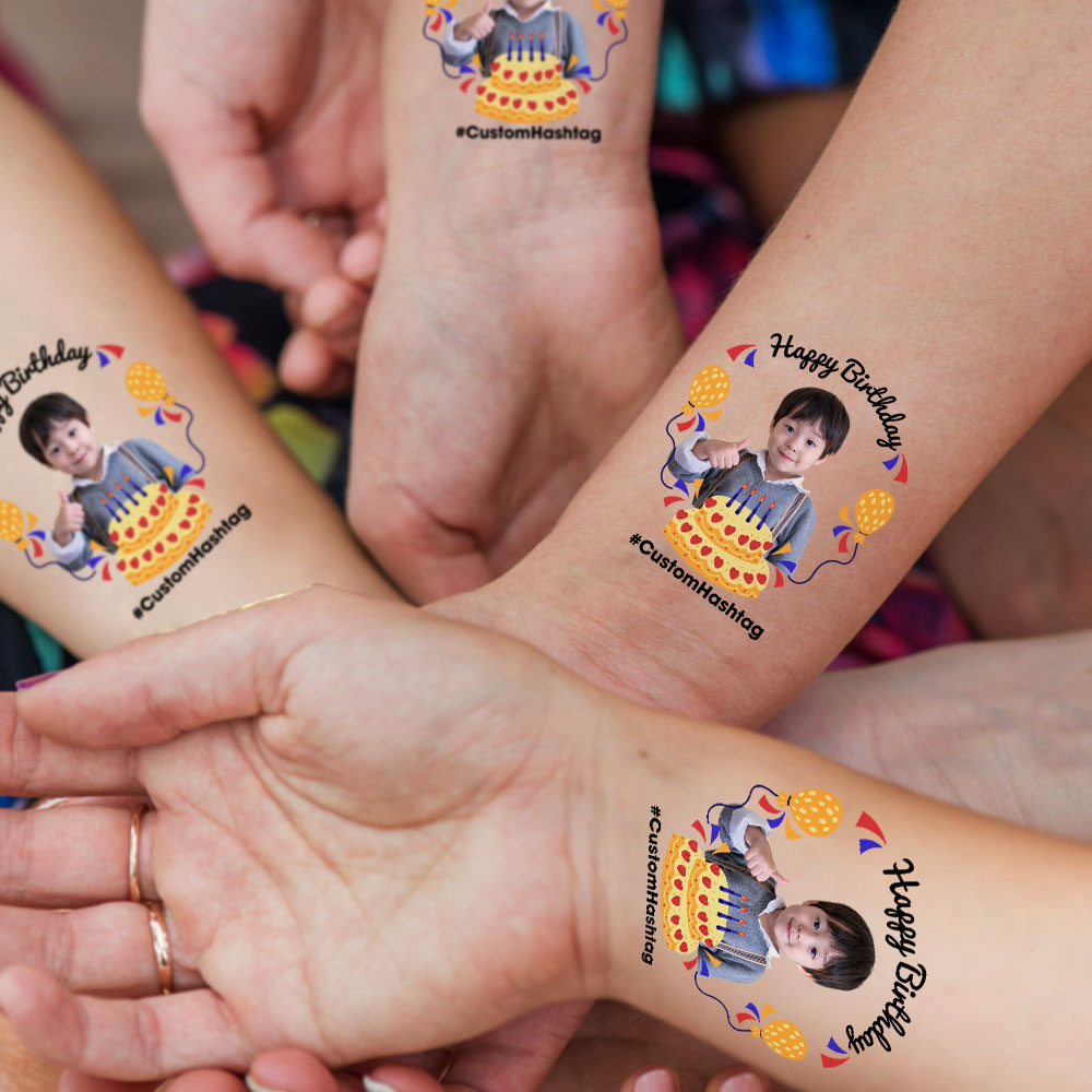 It's Party Cake Custom Photo And Text Temporary Tattoo, Personalized Tattoo, Fake Tattoo