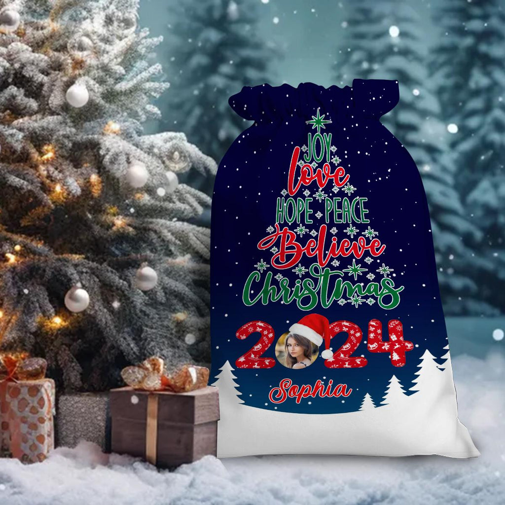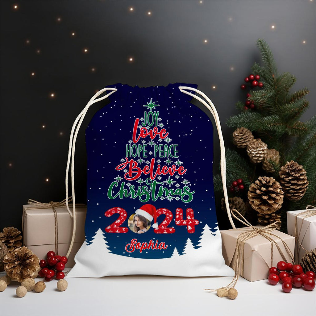 Joy Love Hope Custom Photo And Name, Personalized String Bag, Christmas Gift