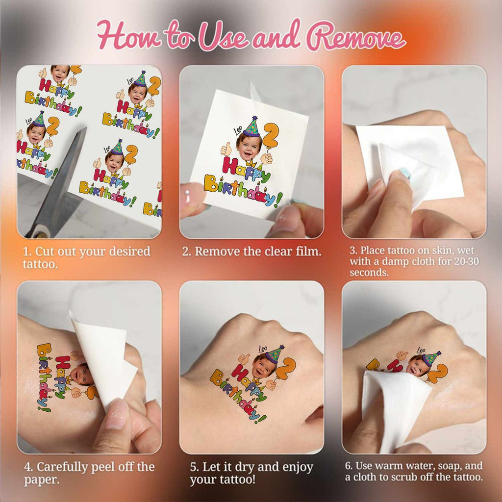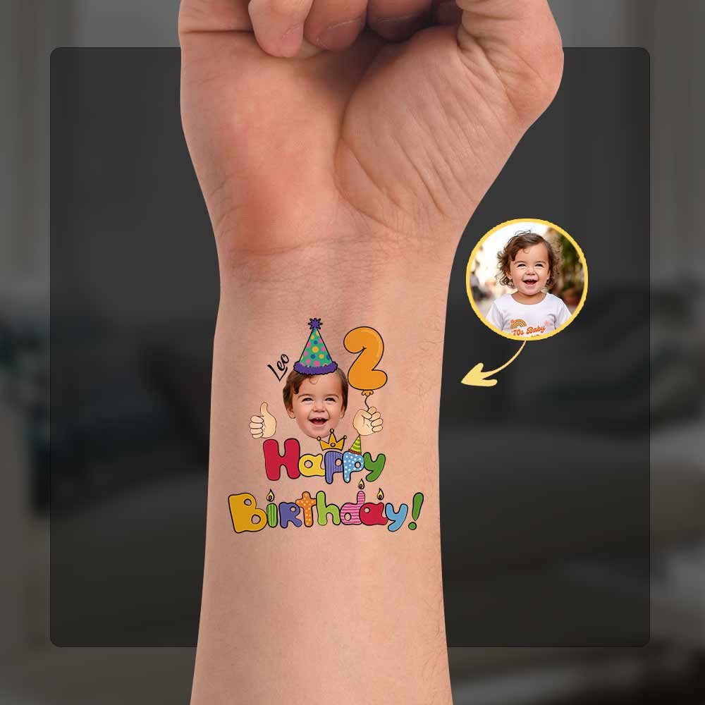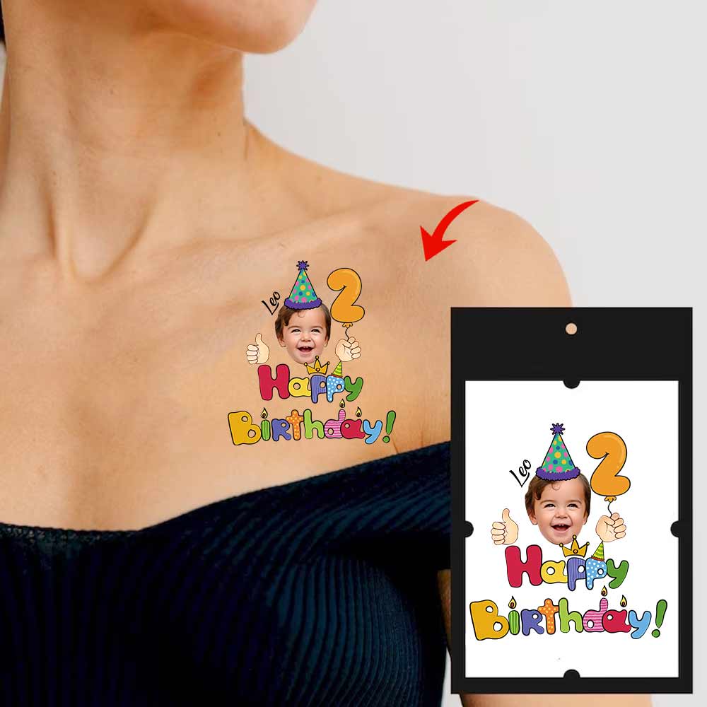 Kid Birthday Party, Custom Photo And Text Temporary Tattoo, Personalized Tattoo, Fake Tattoo