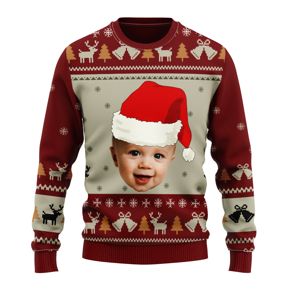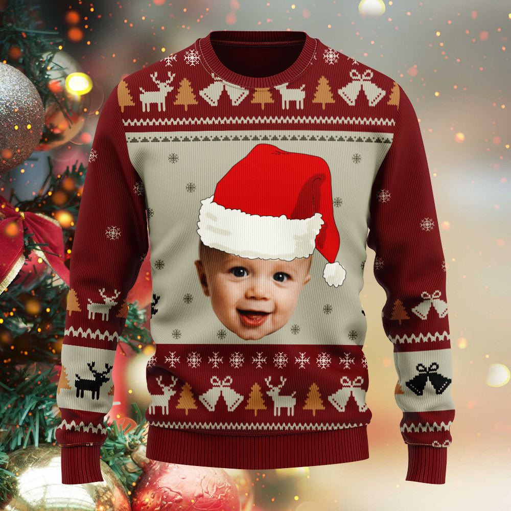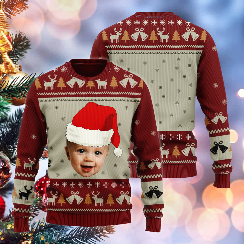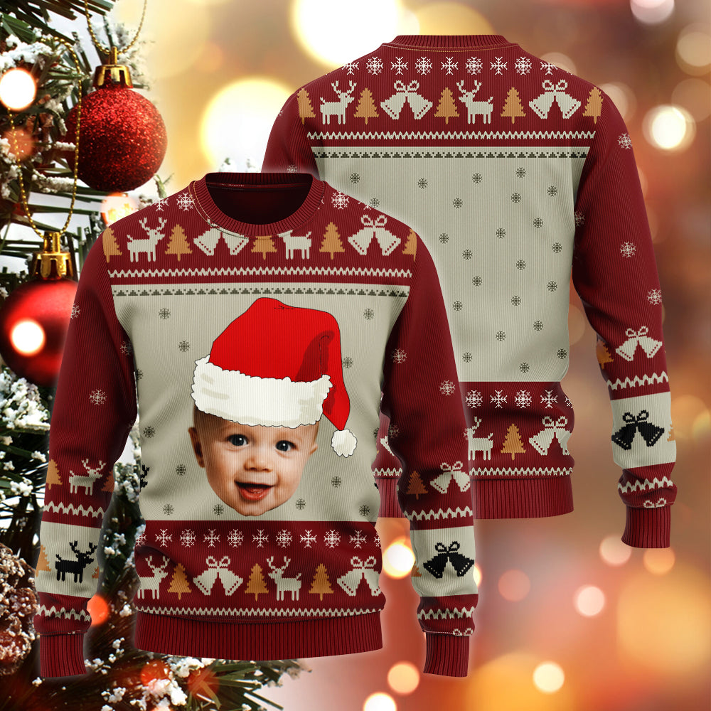 Merry Christmas Kid Wear Hat - Custom Photo And Name - Personalized Woolen Sweater - Family Gift, Xmas Gift